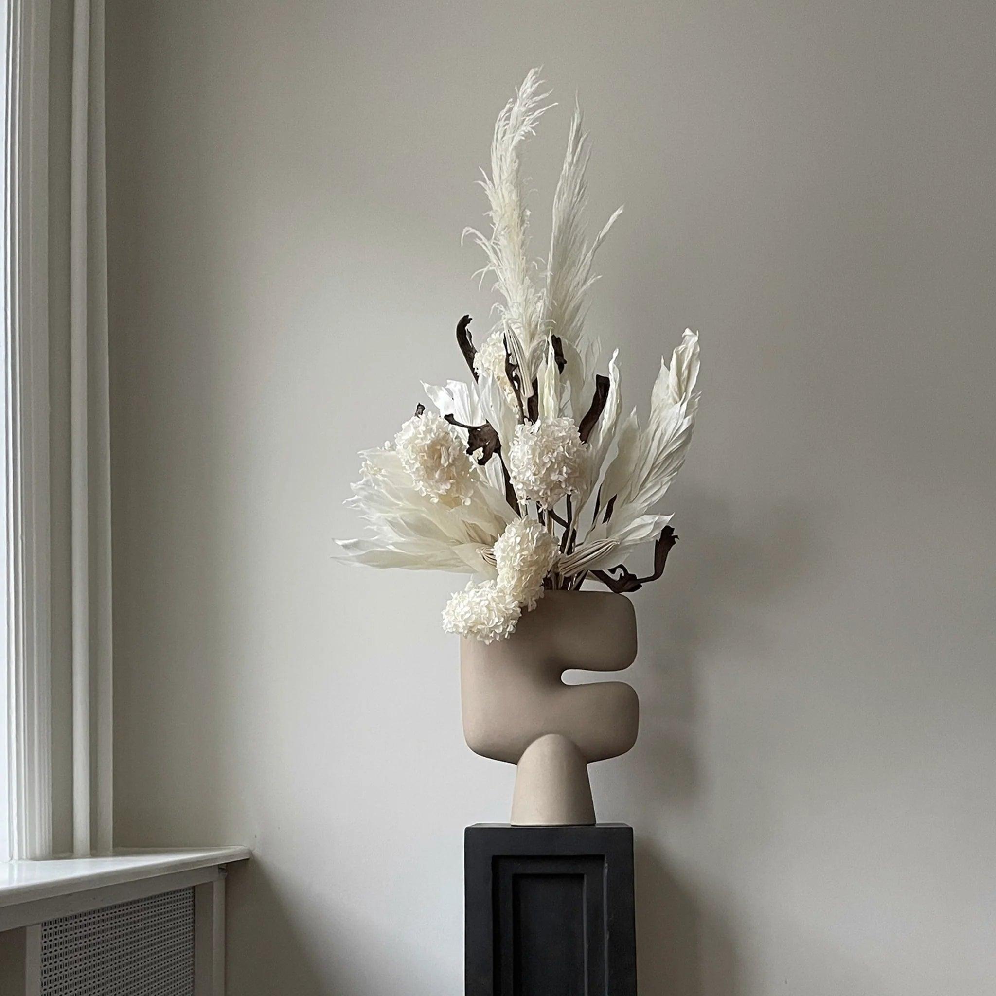 Podobnie jak otwarte usta na postumentach, maski są przedmiotem o pięknym kształcie w spokojnych, kojących i zakurzonych kolorach terakoty i szarości. Ponieważ jest to produkt naturalny, ręcznie szkliwiony, kolory mogą się nieznacznie różnić.