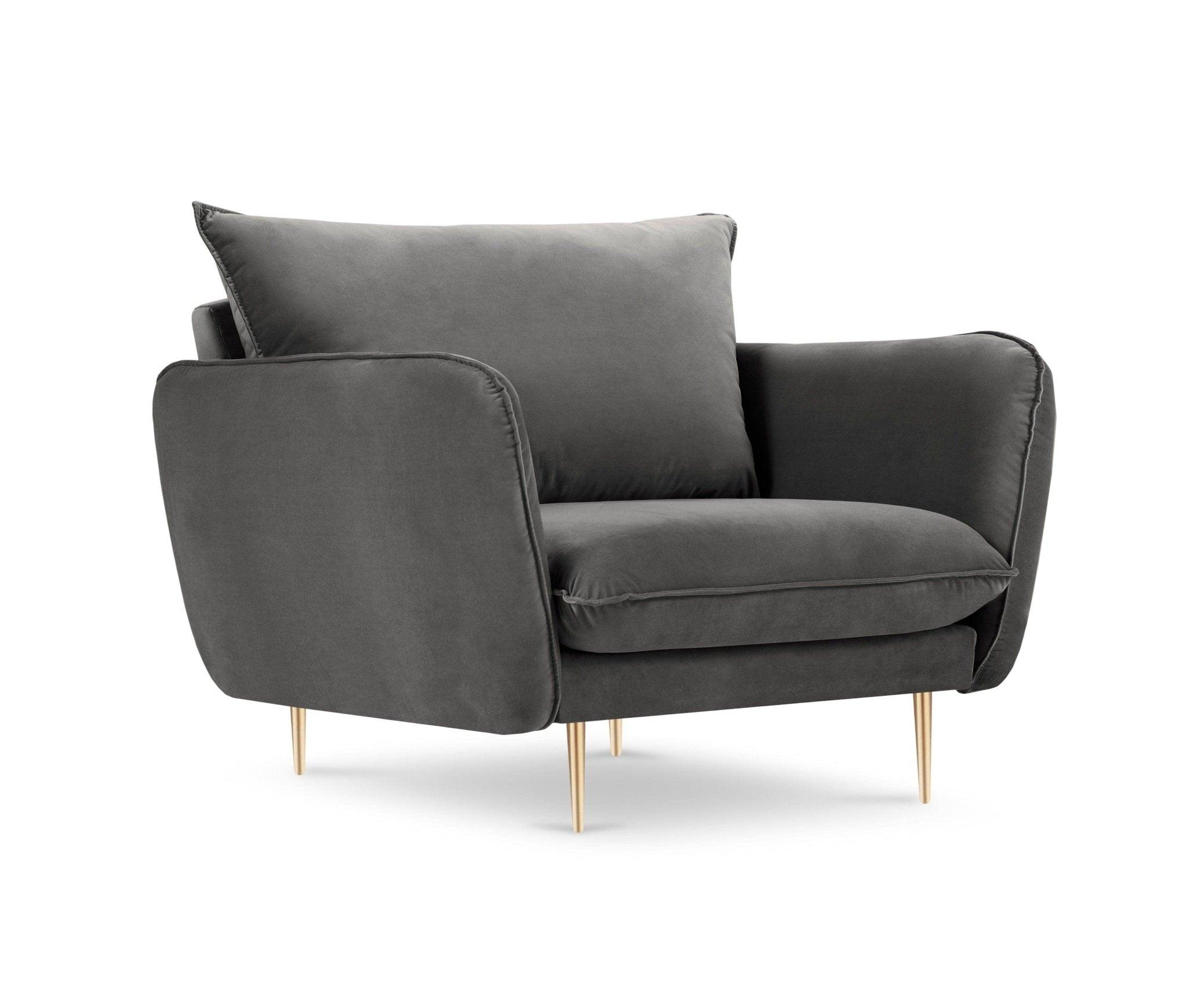 Fotel aksamitny VIENNA ciemnoszary ze złotą podstawą