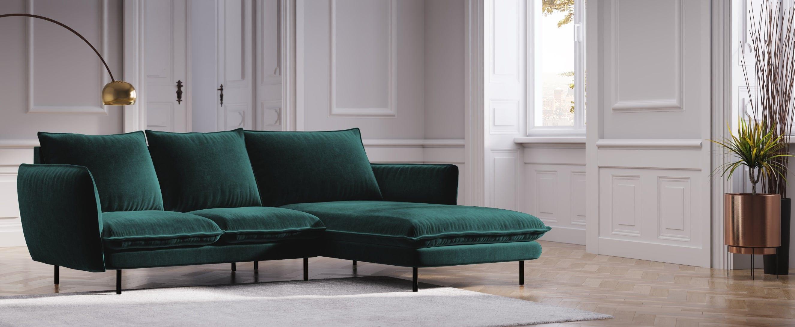 Narożnik Vienna wyróżniają piękne proporcje i harmonijne kształty. Narożnik do salonu jest nie tylko wygodny, ale też wprowadzi do wnętrza nutę paryskiego szyku i elegancji. Subtelna forma i miękkie siedzisko zapewnią niezwykły komfort użytkowania. Metalowe nogi nadają całej formie lekkości.
