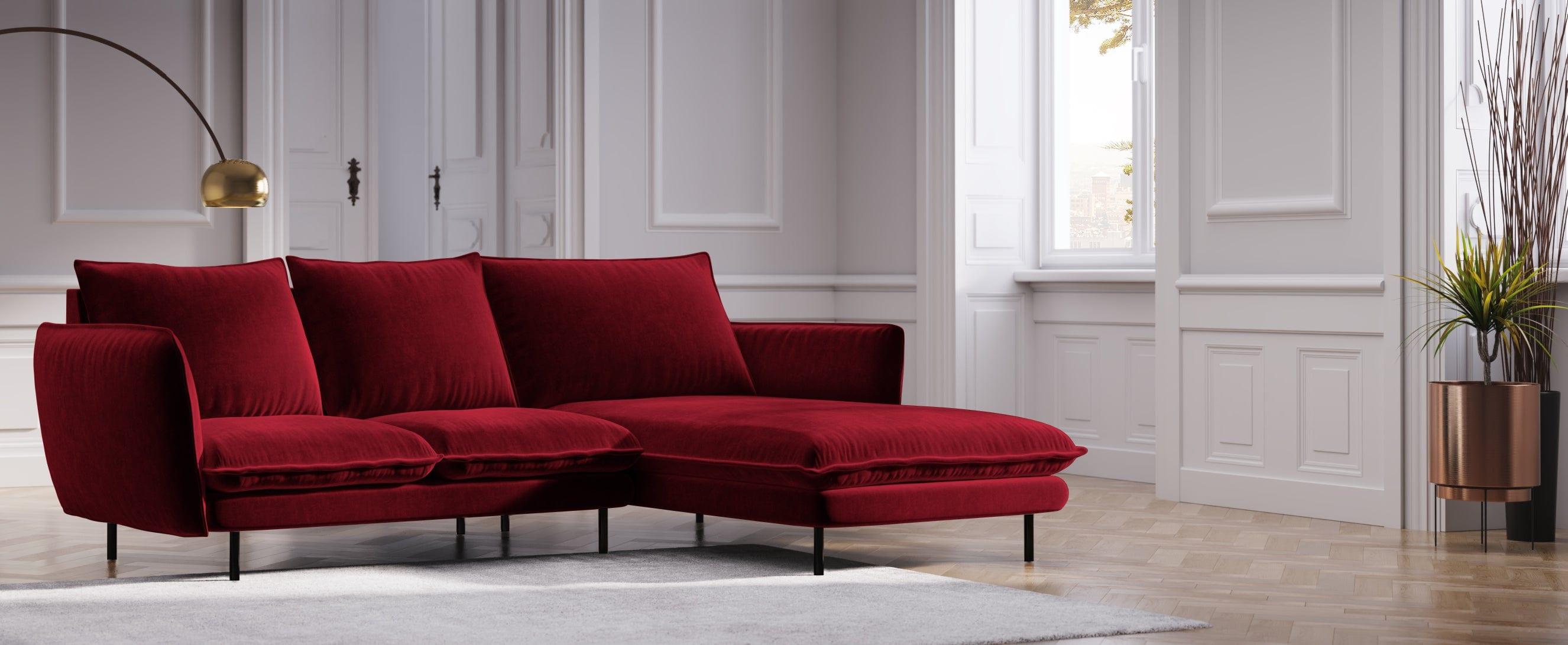 Narożnik aksamitny prawostronny VIENNA bordowy z czarną podstawą
