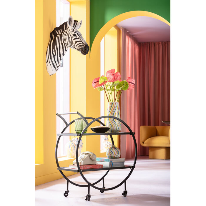 Ten czarny wózek barowy z serii Loft wprowadza elegancki akcent do każdego pomieszczenia. Charakteryzuje się nowoczesnym, graficznym designem w wyrazistym czarnym kolorze. Stalowa konstrukcja z półkami z hartowanego szkła dodaje wózkowi nie tylko stylu, ale także trwałości.