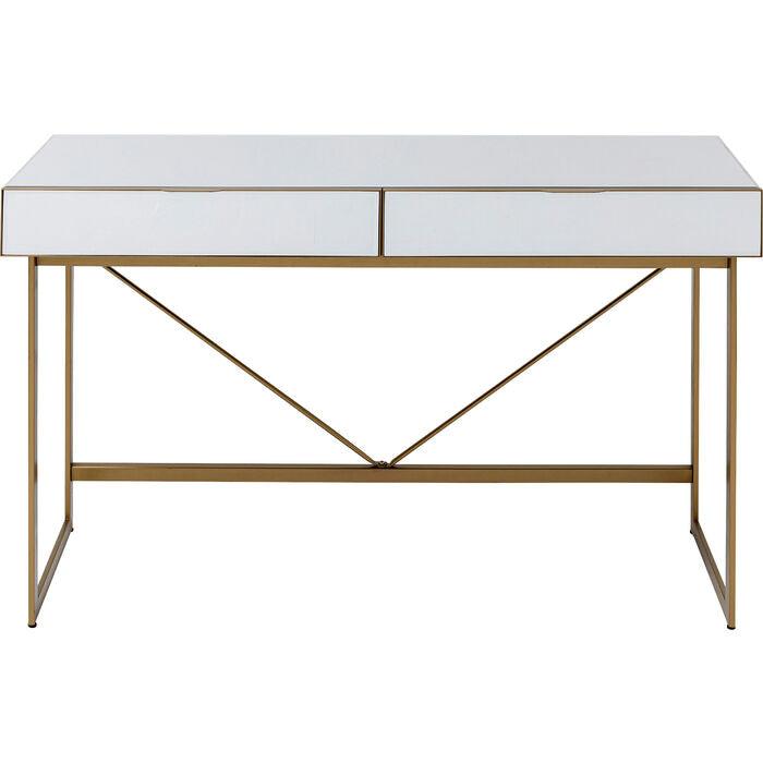 Biurko, z jego pełnym blasku stylem. oferuje wszystkie zalety stanowiska pracy i zapewnia miejsce na laptopa i dokumenty. Można je schować w dwóch przestronnych szufladach. Blat można szybko i higienicznie wyczyścić za pomocą płynu do szkła. Tak imponujące biurko to przyjemność, przy której z radością usiądziesz rano, aby stylowo wykonywać swoje obowiązki.