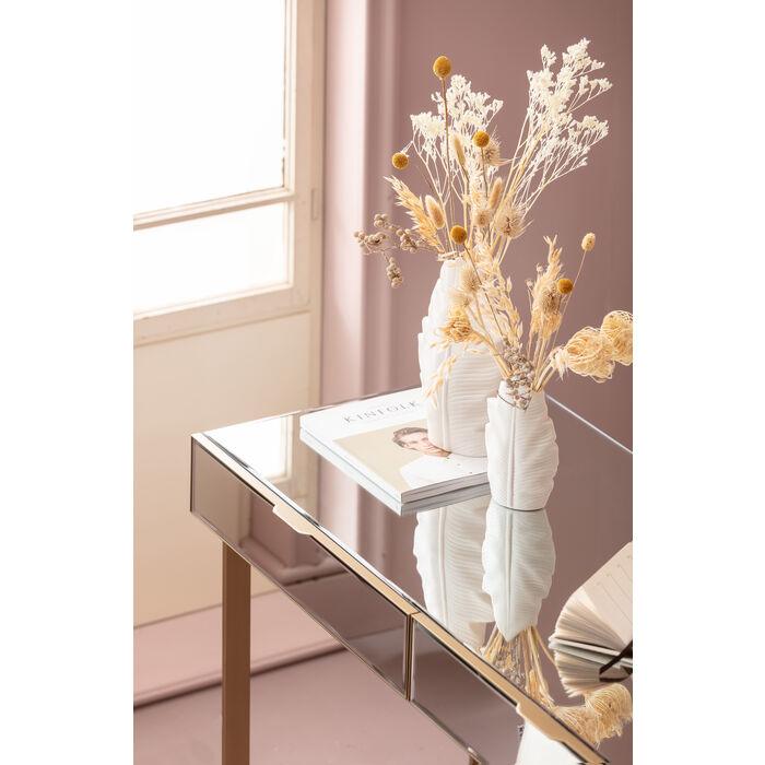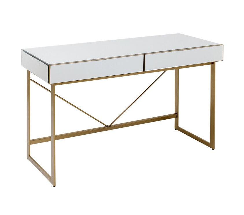 Biurko Soran to idealny dodatek do wnętrz w stylu moder classic czy glamour. Blat, fronty i boki ramy są pokryte lustrzanym szkłem, które ma wyrafinowane wykończenie na krawędziach. Możesz wkomponować ten odbijający stół do swojego salonu, sypialni lub pokoju gościnnego w każdej chwili, ponieważ Soran wcale nie wygląda jak stół do pracy. To właśnie czyni go tak uroczym, że możesz go używać jako toaletki lub konsoli w dowolnym momencie.