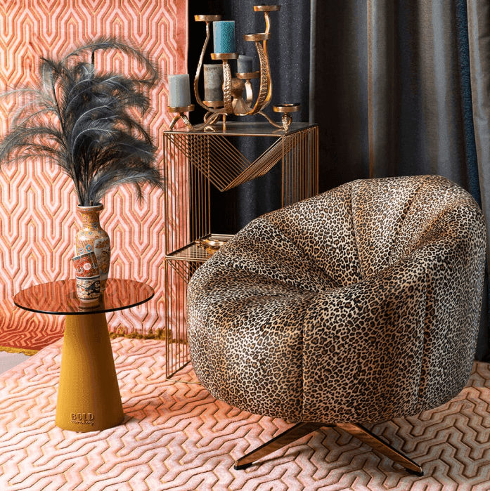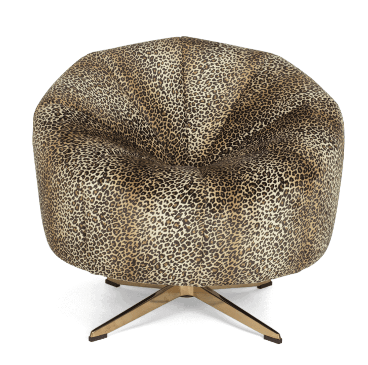 Oto designerski fotel dla odważnych! Aksamitna tapicerka w połączeniu z drapieżnym nadrukiem w panterkę tworzy ekstrawagancki projekt, który nie będzie siedział cicho w kącie. Złota podstawa dodaje elegancji i równoważy szerokie siedzisko. Całość wygląda niezwykle oryginalnie i stylowo.