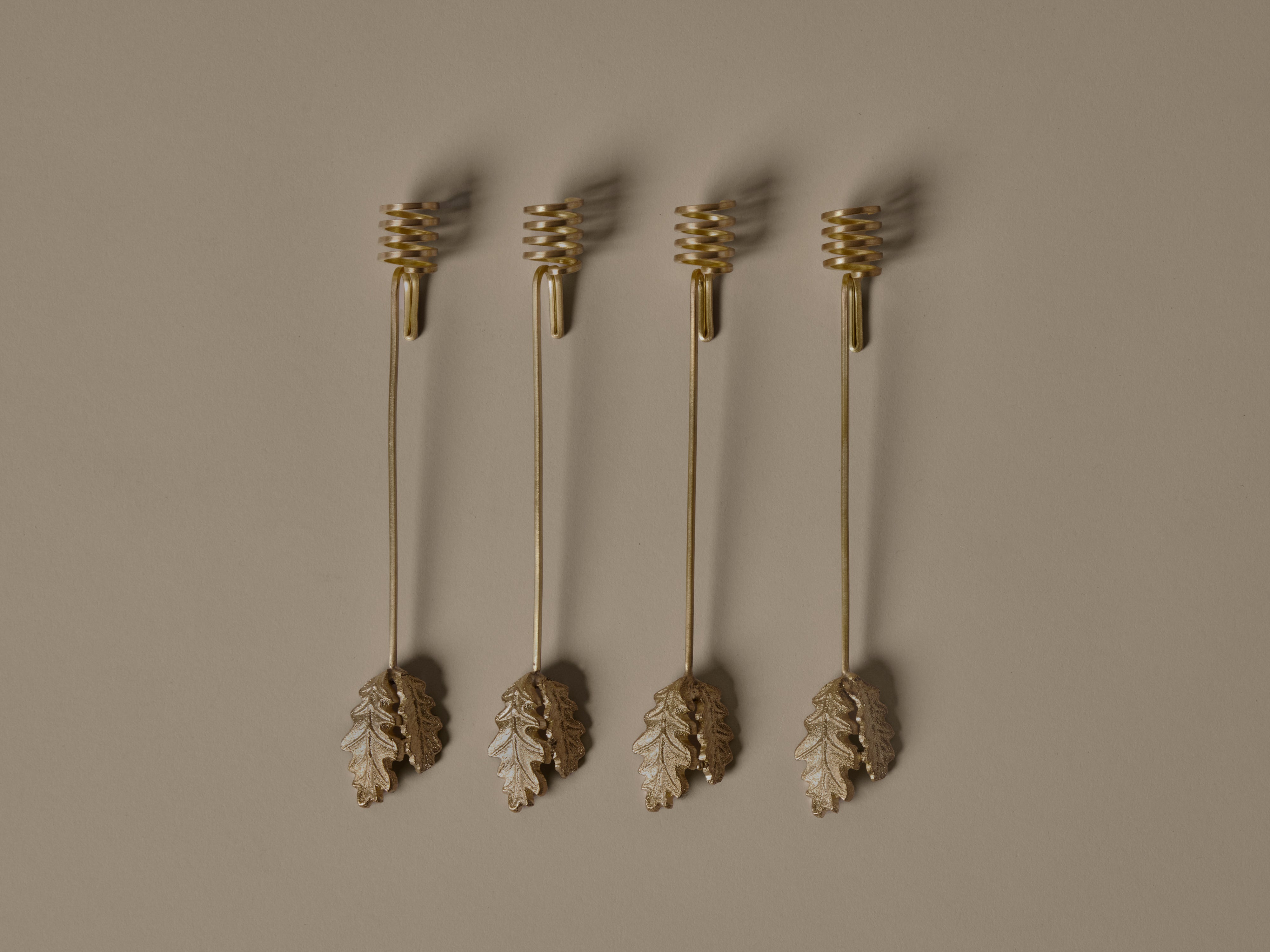Świeczniki Oak Leaf to wyjątkowe połączenie naturalnej inspiracji i biżuteryjnej elegancji. Wykonane z litego, odlewanego mosiądzu z matowym wykończeniem, zachwycają precyzyjnym detalem przypominającym kształt liścia dębu. Delikatnie połyskują w świetle, wprowadzając do wnętrza ciepły, złocisty blask i elegancki nastrój. Idealnie sprawdzą się jako ozdoba choinki lub świątecznego stołu, dodając aranżacji luksusowego, a zarazem naturalnego charakteru.