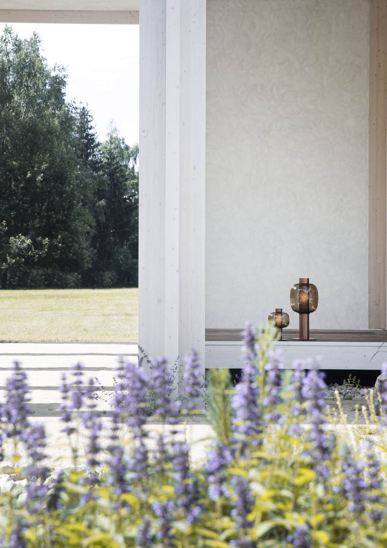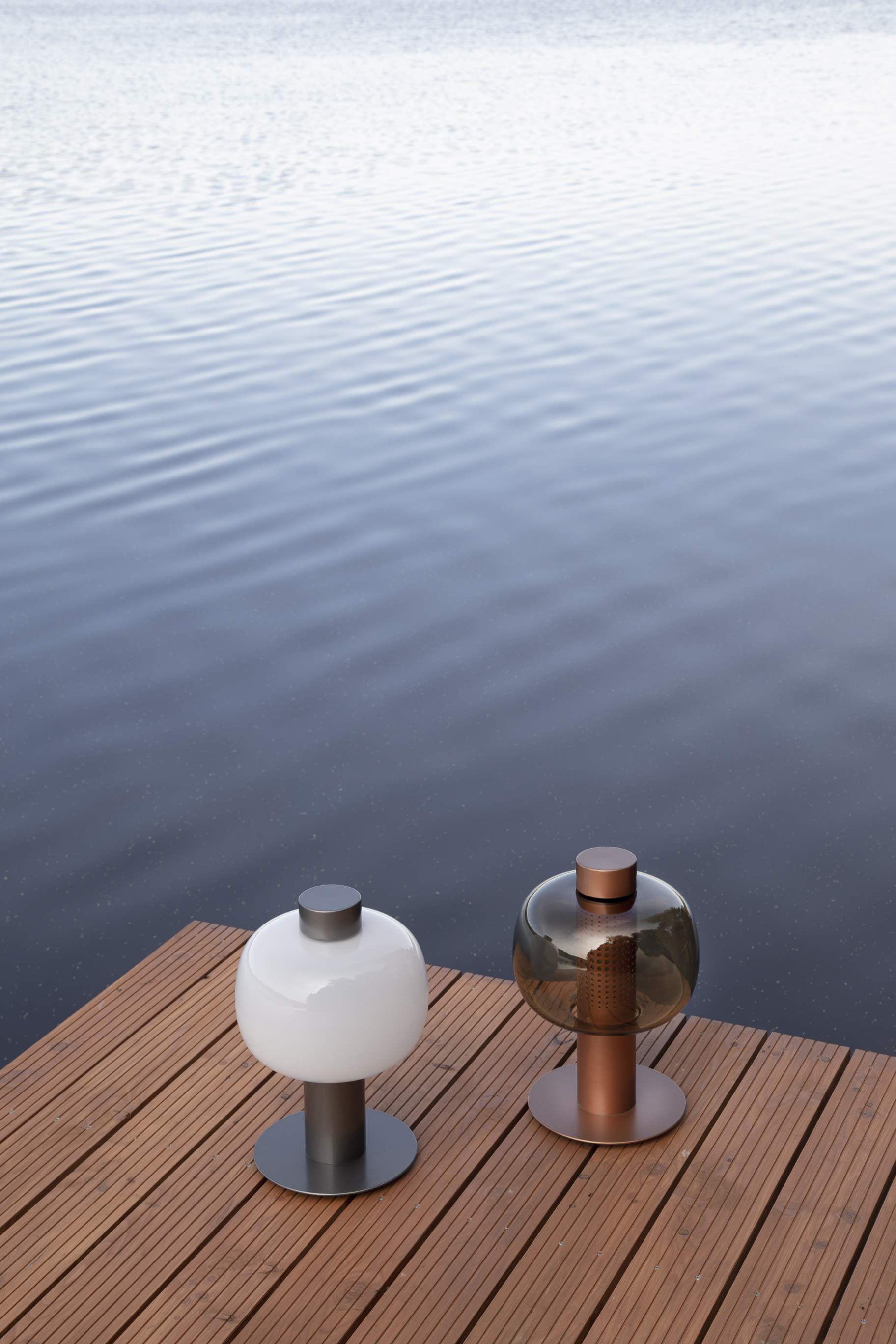 Ta lampa zgodna z normą IP44, ma podstawę ze stali nierdzewnej z ekologiczną powłoką proszkową i klosz z dmuchanego szkła, co nadaje jej wygląd tradycyjnej lampy bonbori. Dostępna w opcjach opalowego szkła i różnych kolorach podstawy, jest zaprojektowana do podłączenia za pomocą podziemnego okablowania.