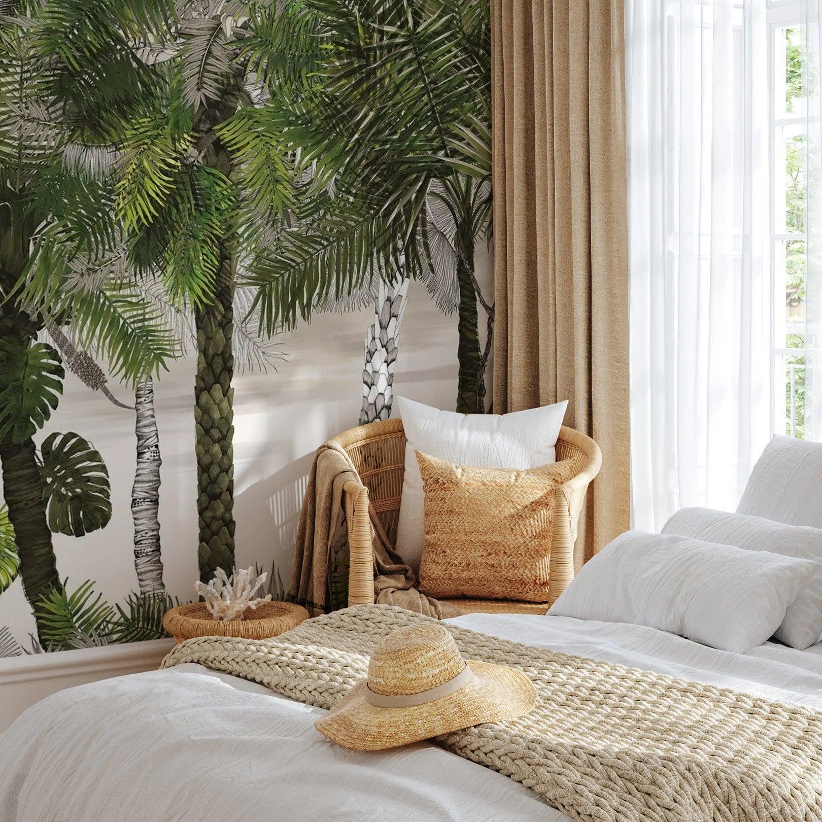 Przywróć swojej przestrzeni wyjątkowy charakter za pomocą tapety Croisette - Rainette w eleganckim odcieniu zielonym. To niezwykłe dzieło sztuki łączy w sobie funkcję i estetykę, prezentując panel z nadrukiem cyfrowym stworzony, aby na nowo wyobrazić całą ścianę. Palmy wznoszące się przed krajobrazem otwartego nieba tworzą malowniczy pejzaż, utrzymany w ilustracyjnym stylu z różnorodnymi motywami wzorów. Wydrukowana na podłożu z włókniny zielona tapeta nie tylko ułatwia proces zawieszania, ale także jest w pełni zmywalna, co sprawia, że utrzymanie jej w doskonałym stanie jest niezwykle proste. Pozwól Croisette - Rainette przemienić Twoje wnętrze w galerię sztuki, dodając mu unikalny, artystyczny wymiar.