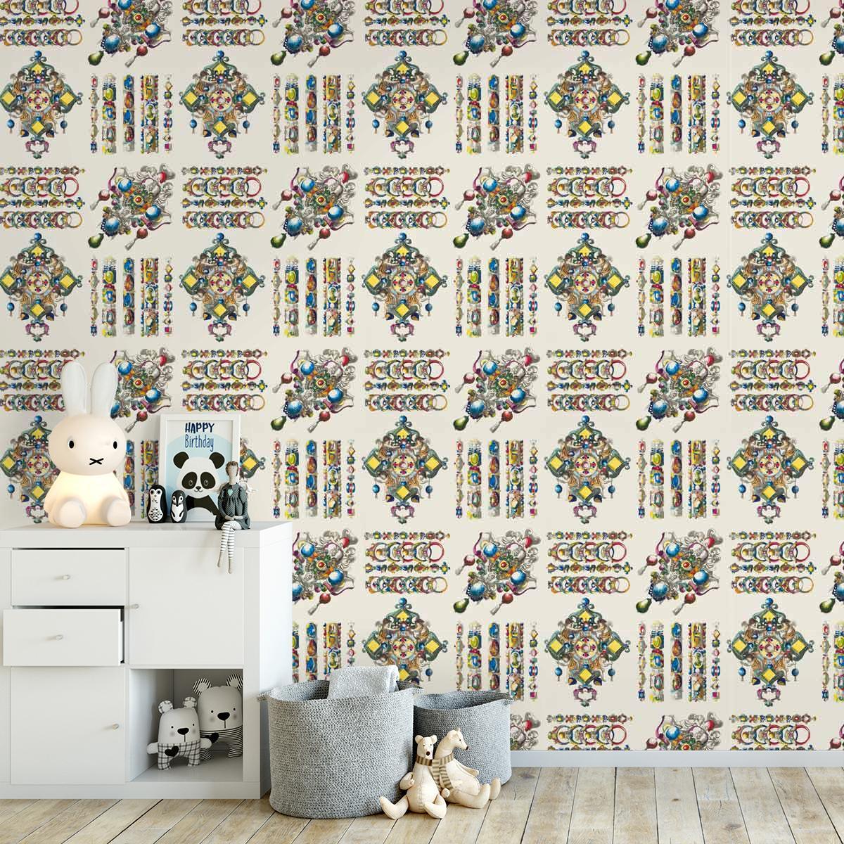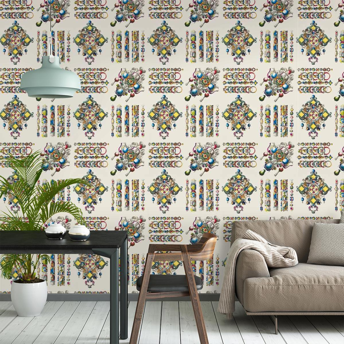Podkreśl elegancję swojego wnętrza za sprawą tapety La Main Au Collet - Zinc w delikatnym odcieniu beżu. Elegancko ułożone szlifowane kamienie szlachetne i biżuteria tworzą wyrafinowany wzór na tle luźnej kratki, podkreślając dynamikę tego unikatowego motywu, który został precyzyjnie odtworzony dzięki technologii druku cyfrowego. Egzotyczny design tej tapety dostępny jest w różnych motywach kolorystycznych, umożliwiając dopasowanie do indywidualnych preferencji. Podłoże z włókniny nie tylko ułatwia proces zawieszania, ale także zapewnia łatwość prania, co czyni tę tapetę nie tylko wyrafinowanym elementem dekoracyjnym, ale również praktycznym rozwiązaniem w aranżacji pomieszczeń.