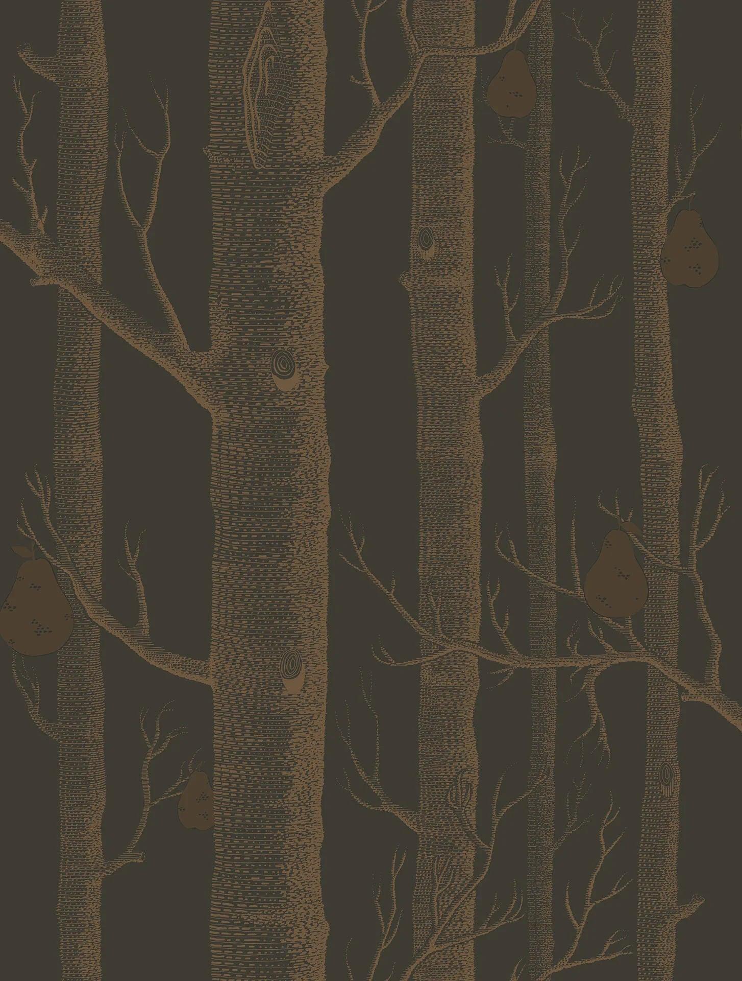 Tapeta CONTEMPORARY COLLECTION - Woods & Pears metaliczny brąz na czarnym