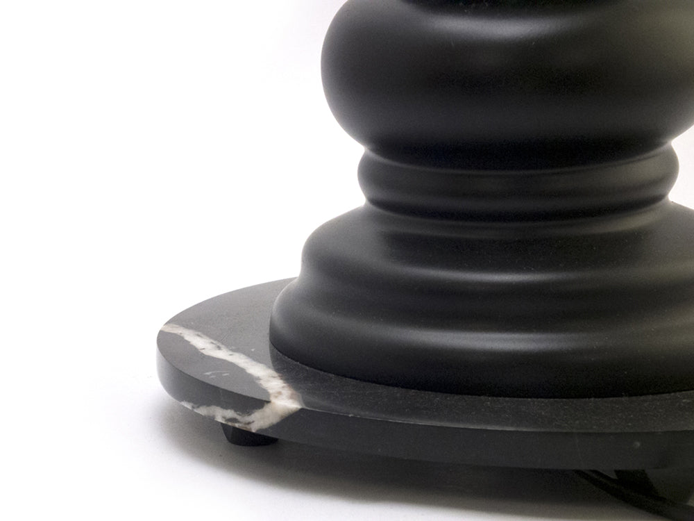 Lampa stołowa Punk Deluxe Black Edition to elegancka, a zarazem wyrazista dekoracja, która łączy w sobie luksusowe materiały i nowoczesny design. Ręcznie malowana, szklana podstawa w połączeniu z czarnym marmurowym elementem tworzy wyjątkowy kontrast, który przyciąga wzrok. Każda lampa stołowa wyróżnia się indywidualnym charakterem dzięki ręcznemu wykonaniu i precyzyjnemu wykończeniu.