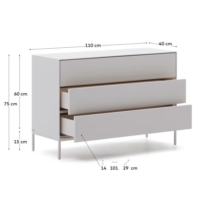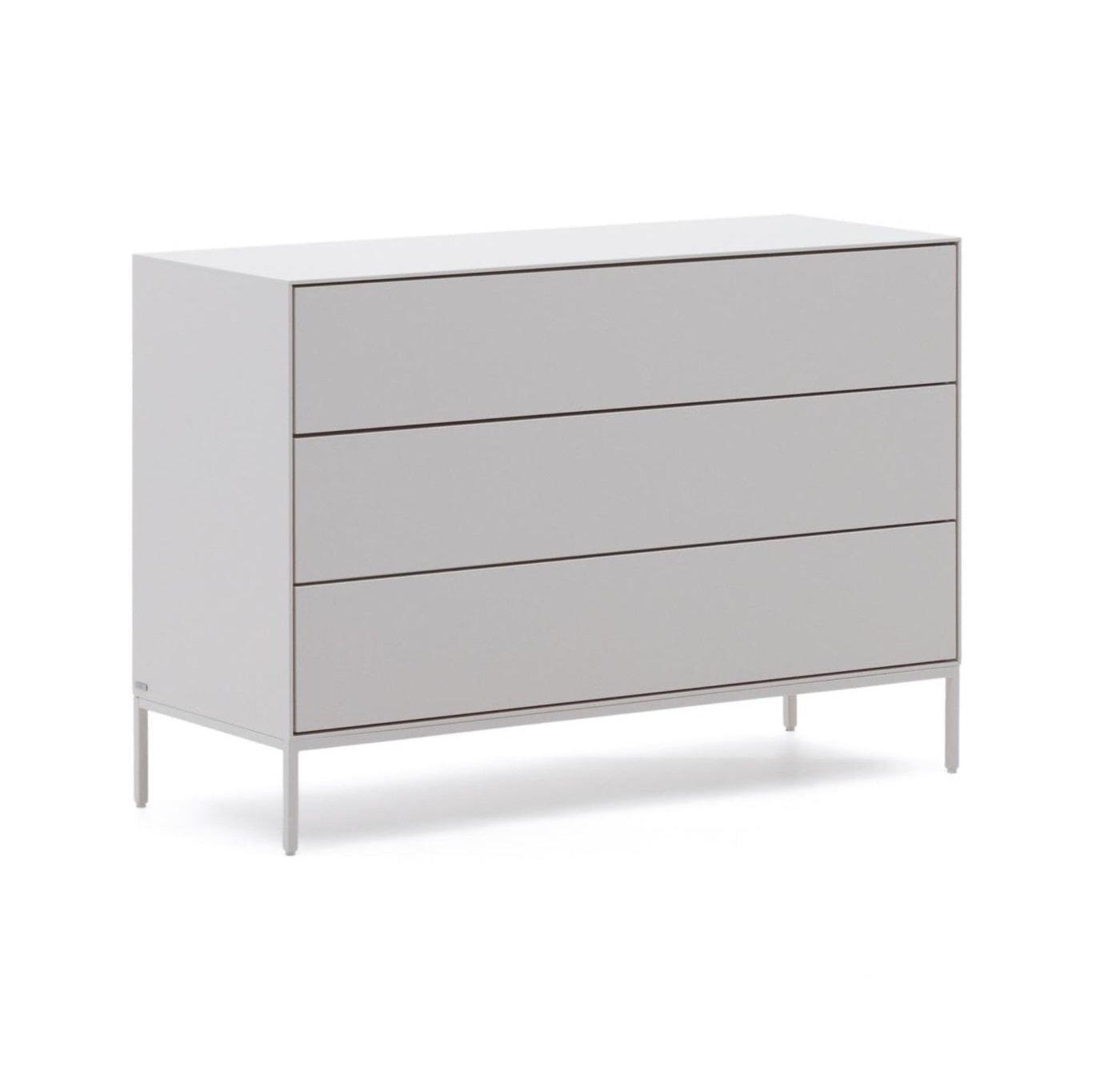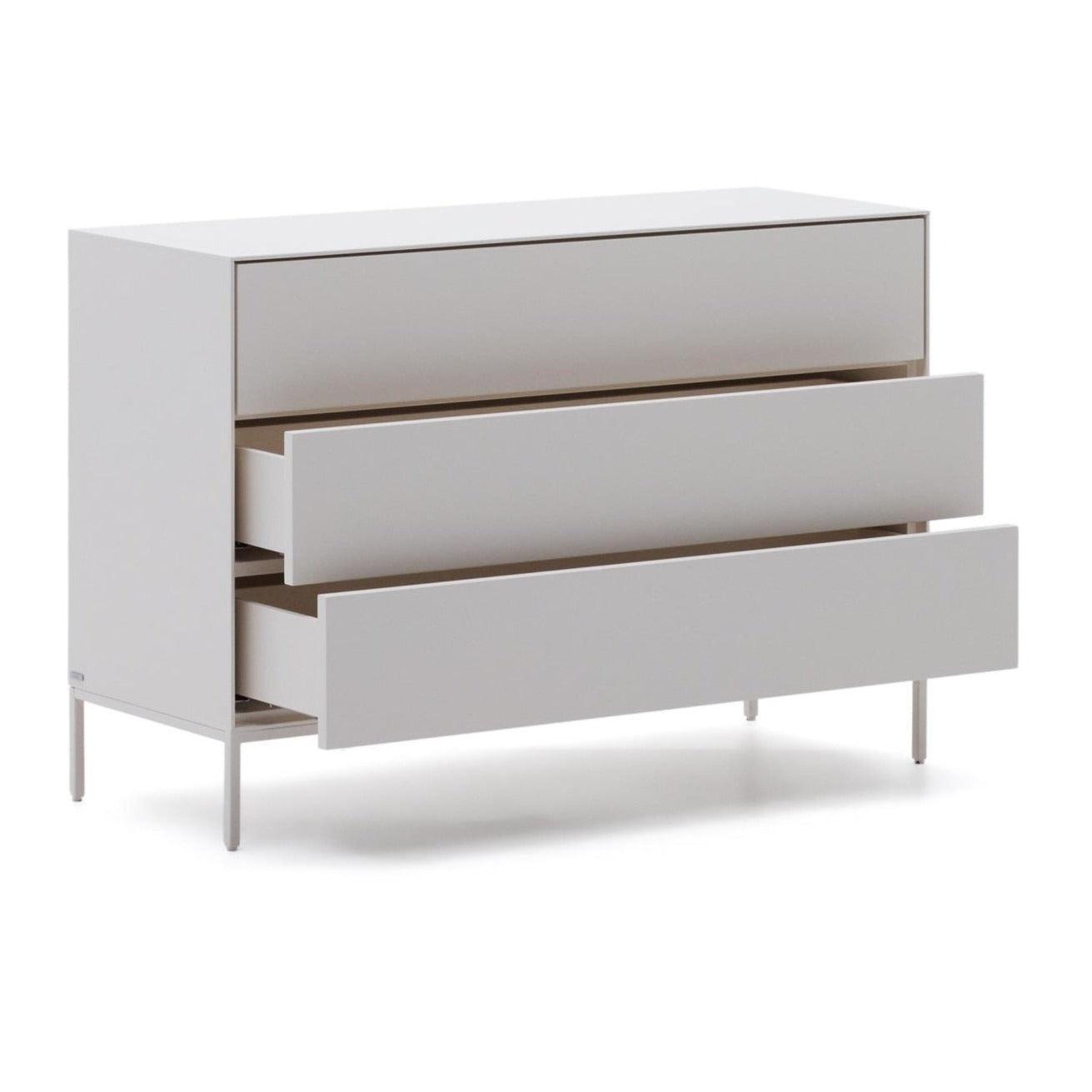 Komoda z szufladami Vedrana, stworzona przez doświadczony zespół projektowy La Forma, reprezentuje doskonałą harmonię pomiędzy białym lakierem a stalą, tworząc wyjątkowe połączenie funkcjonalności i estetyki. To unikalne połączenie materiałów sprawia, że Vedrana doskonale wpisuje się w różnorodne typy domów i style aranżacyjne, podkreślając ich elegancję i nowoczesność.