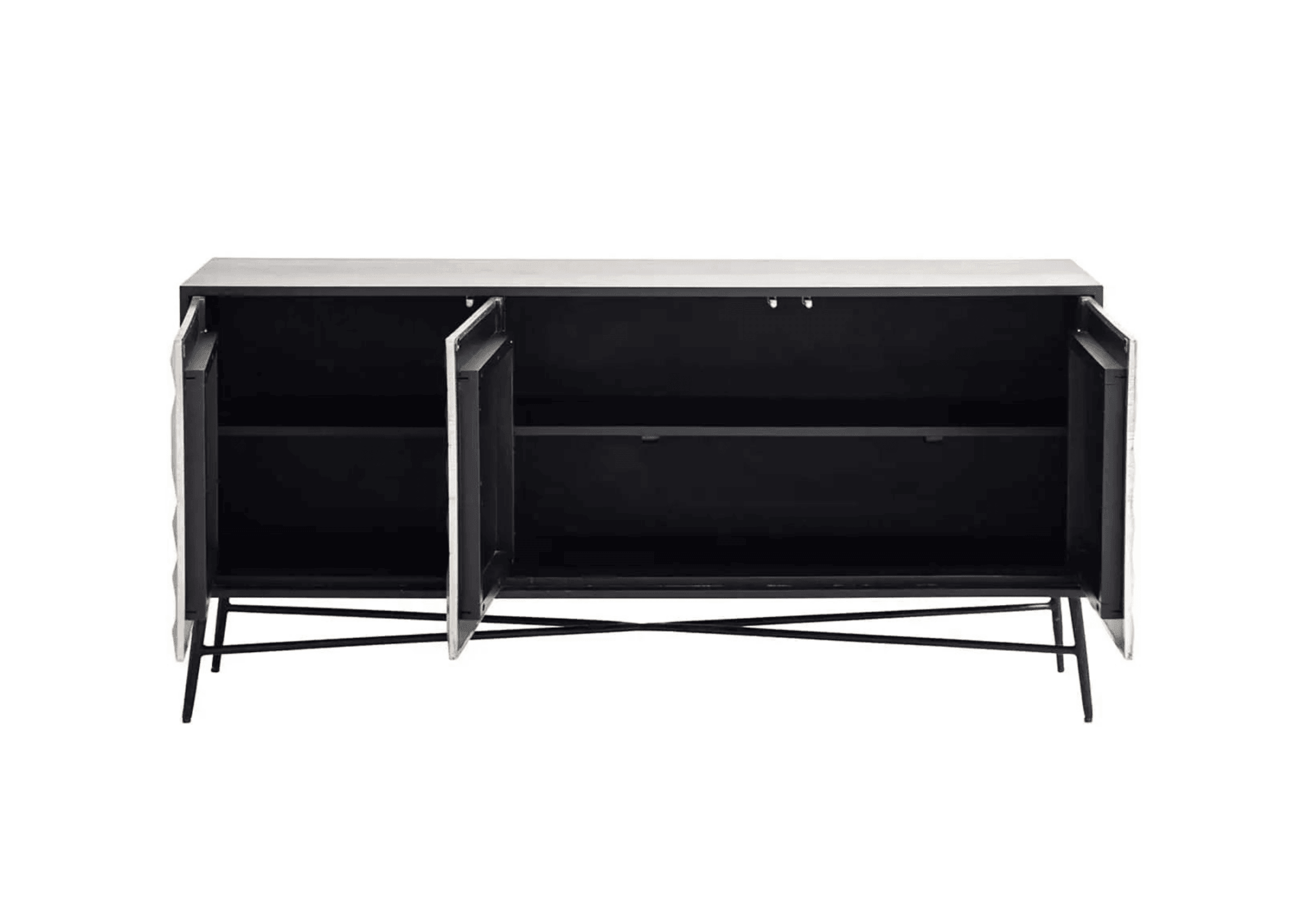 Komoda Tetro w kolorze srebrnym to wyrafinowane połączenie drewna z elegancką srebrną płytą, umieszczoną na solidnej, czarnej metalowej podstawie. Zaprojektowana z myślą o praktycznym przechowywaniu, dysponuje czterema obszernymi półkami, idealnymi do przechowywania ulubionych przedmiotów. Bez względu na charakter Twojego wnętrza – czy to nowoczesny czy rustykalny – komoda Tetro w kolorze srebrnym doskonale się w nim odnajdzie. Jej obecność dodaje pomieszczeniu nie tylko elegancji, ale także niepowtarzalnego stylu, który przyciąga uwagę i tworzy niezwykłą atmosferę.