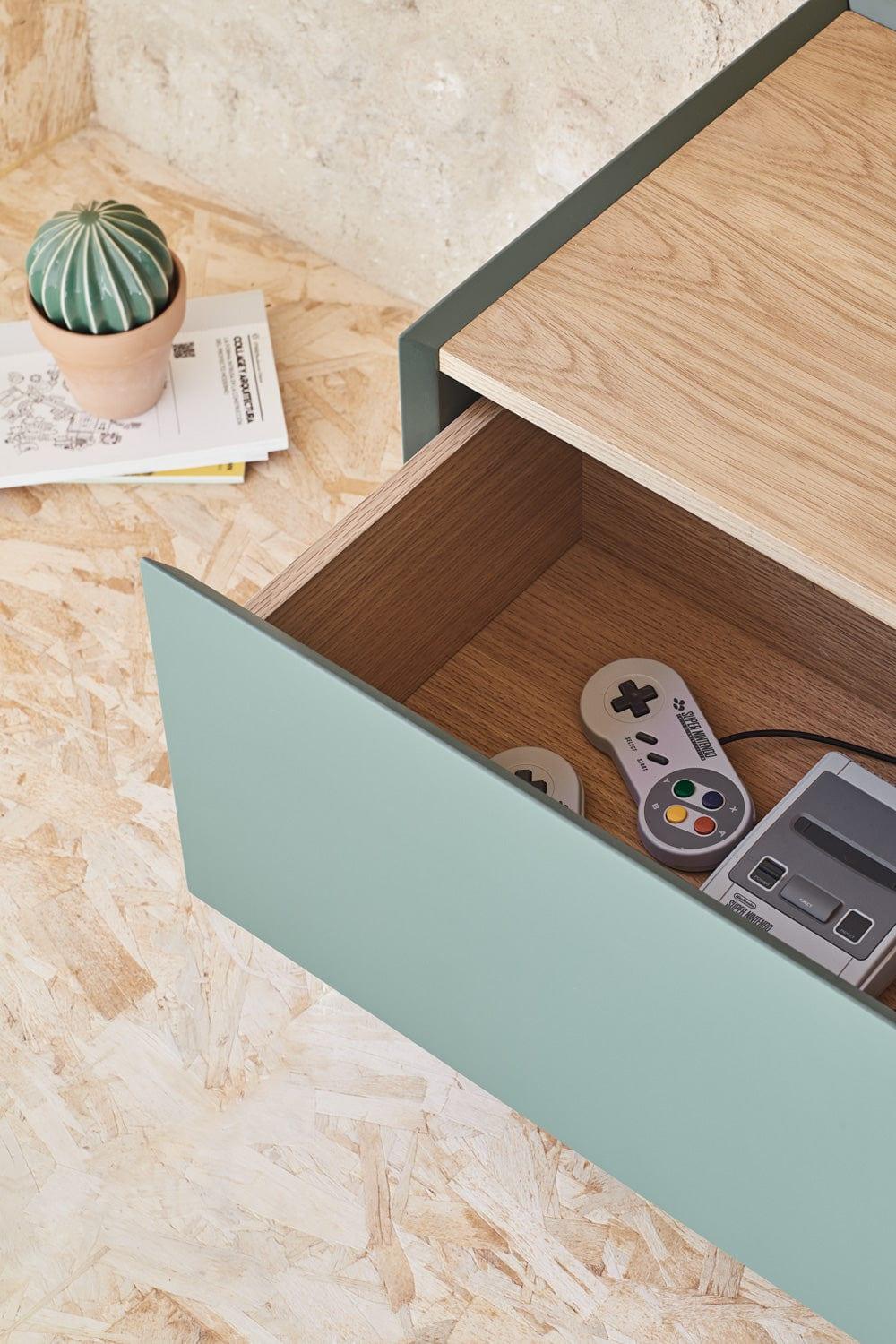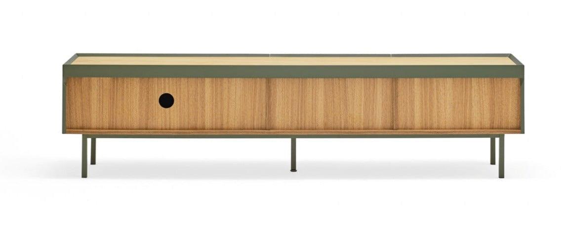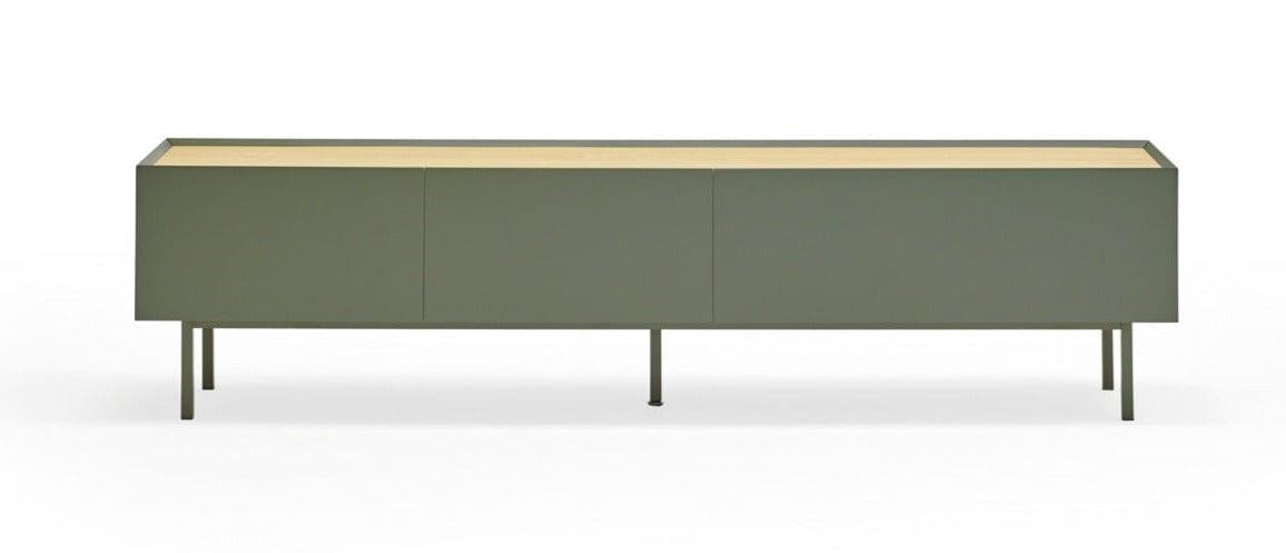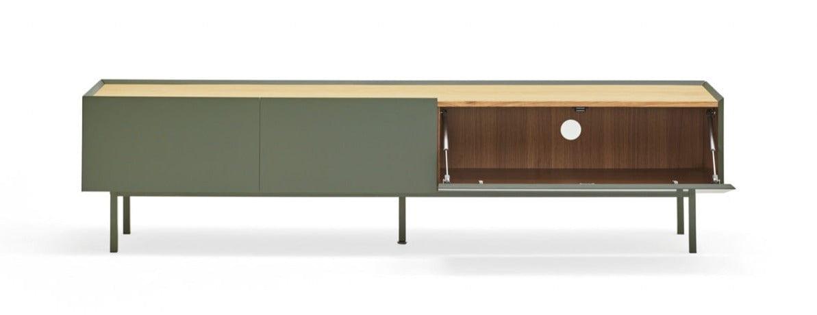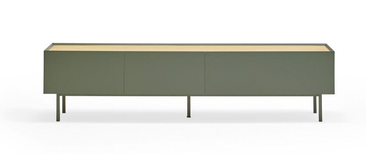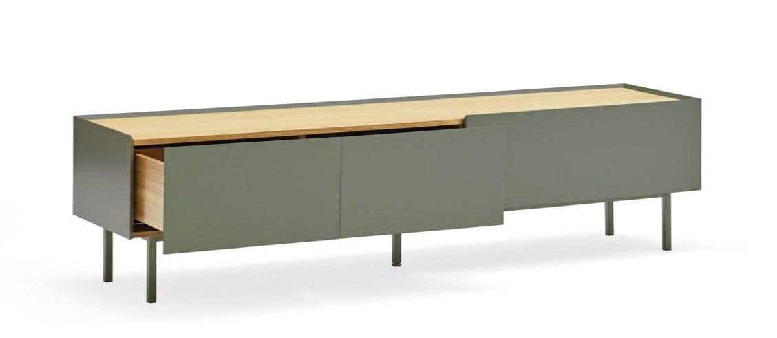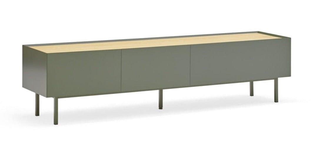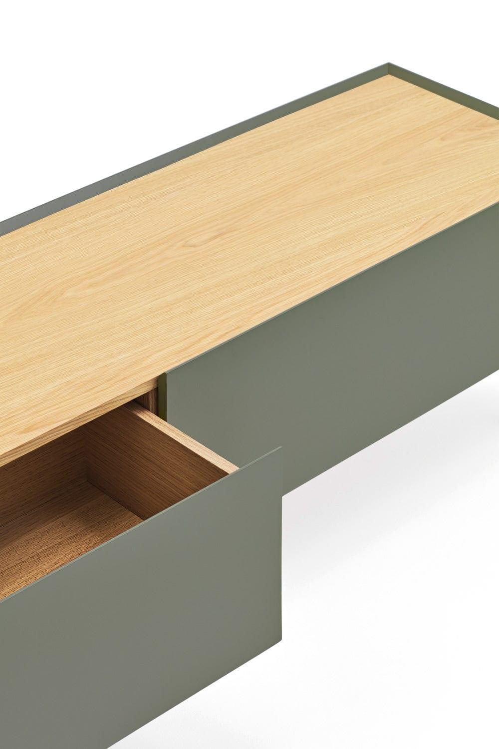 Pojemna i efektowna — taka właśnie jest szafka RTV Arista. Połączenie frontów w kolorze zielonym oraz drewnianego blatu idealnie się ze sobą komponuje. Elegancka konstrukcja zachowuje prostotę oraz minimalizm wyrazu. Dzięki zastosowaniu wysokiej jakości materiałów szafka pod telewizor Arista jest wytrzymała oraz stabilna.