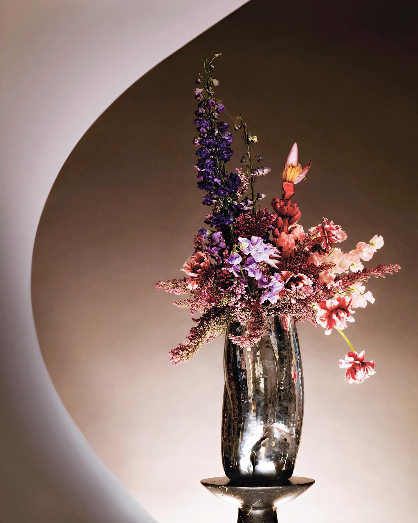 Wazon Cloud Tall wykonany z polerowanego, młotkowanego aluminium to wyrafinowany dodatek, który łączy w sobie nowoczesność i tradycyjne rzemiosło. Jego organiczny kształt i lśniąca powierzchnia przyciągają wzrok, tworząc unikalny punkt centralny w każdej aranżacji wnętrza. Idealnie nadaje się do ekspozycji pojedynczych kwiatów, minimalistycznych bukietów lub jako samodzielny element dekoracyjny.