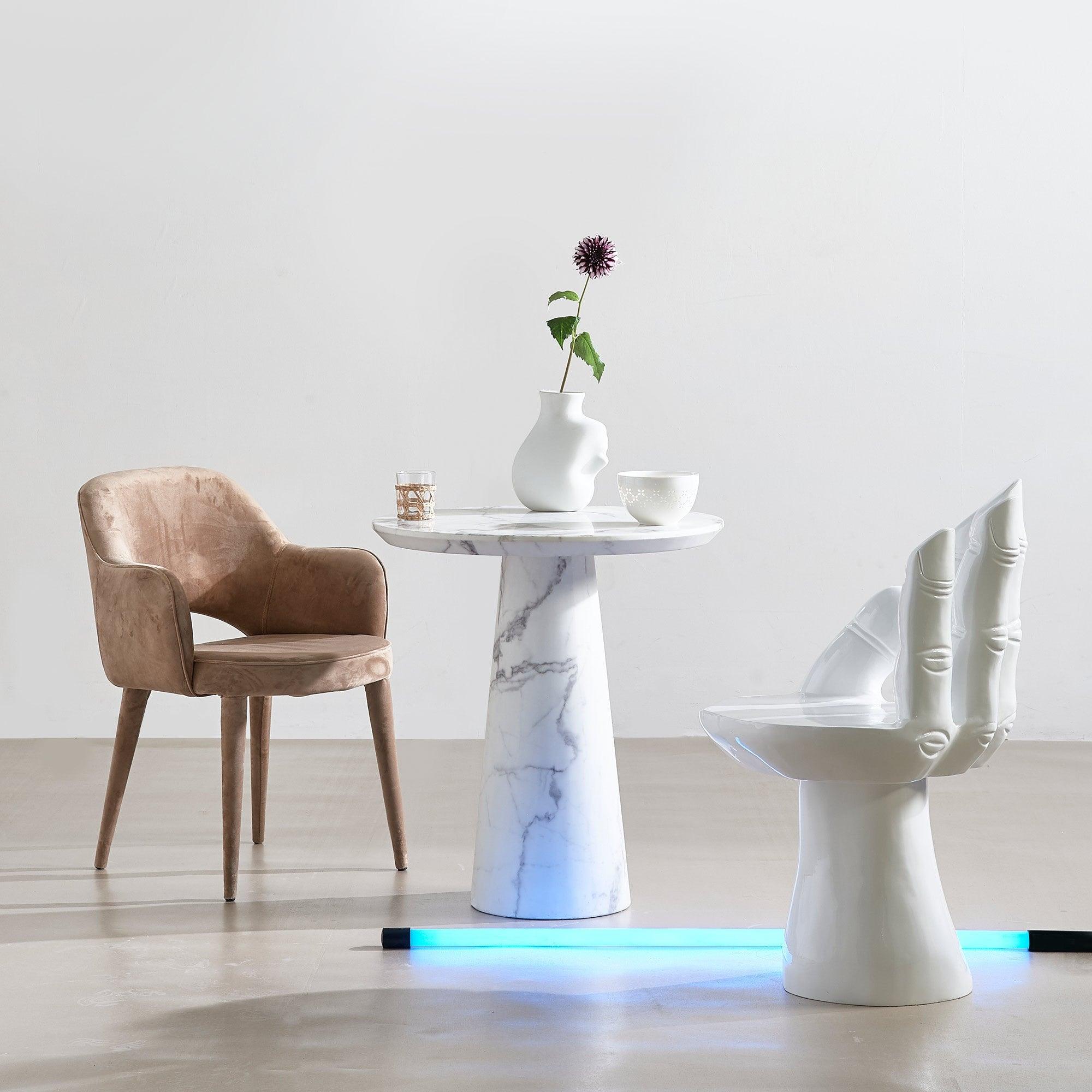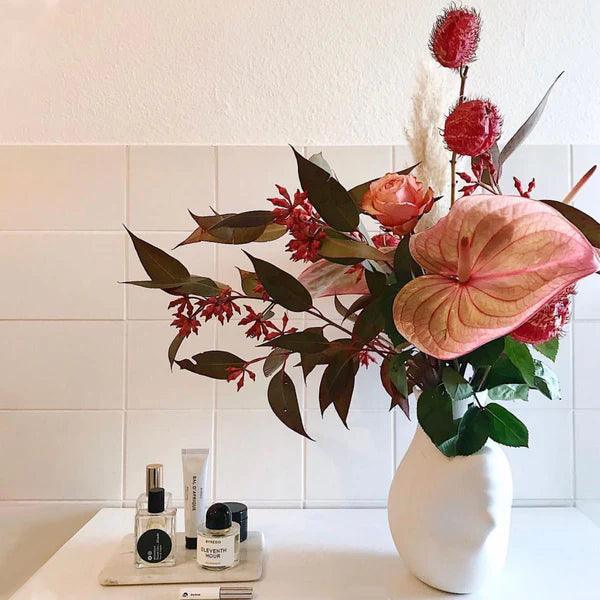 Wazon Upside-Down w kolorze białym to projekt stworzony przez Koens & Middelkoop. Model ten jest w pełni porcelanowy, z matową powierzchnią, która dodaje nieco zimnego, aczkolwiek niezwykłego charakteru. Ten niestandardowy wazon będzie wspaniałym akcentem dekoracyjnym, a także niebanalnym elementem, który dodatkowo wyeksponuje piękno bukietu kwiatów.