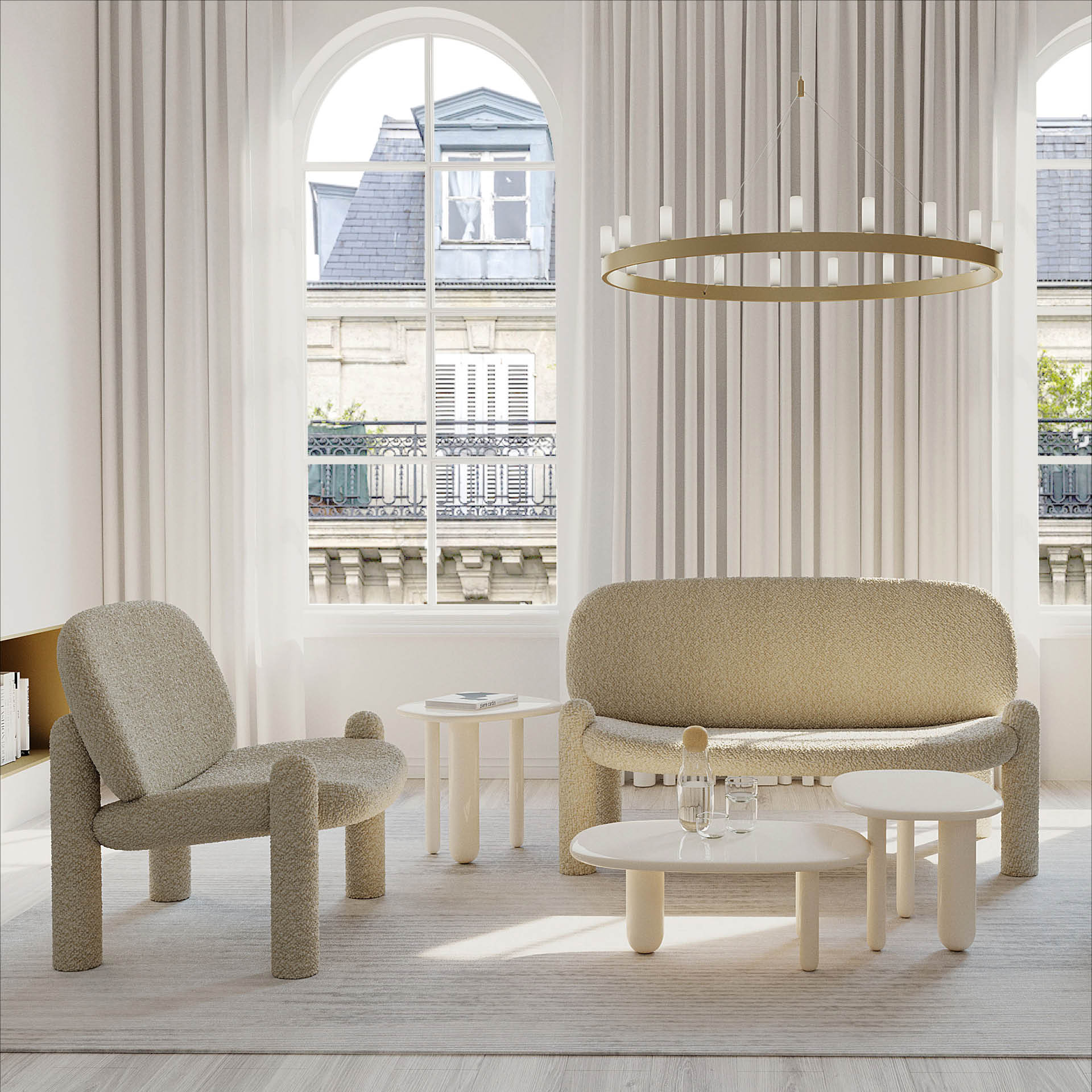 Stolik kawowy Tottori to subtelna i pełna wdzięku forma inspirowana japońską animacją „Mój sąsiad Totoro” autorstwa Hayao Miyazakiego. Projekt stworzony przez Katerynę Sokolovą wprowadza do wnętrza miękkość i przytulność dzięki zaokrąglonym liniom i harmonijnym proporcjom.