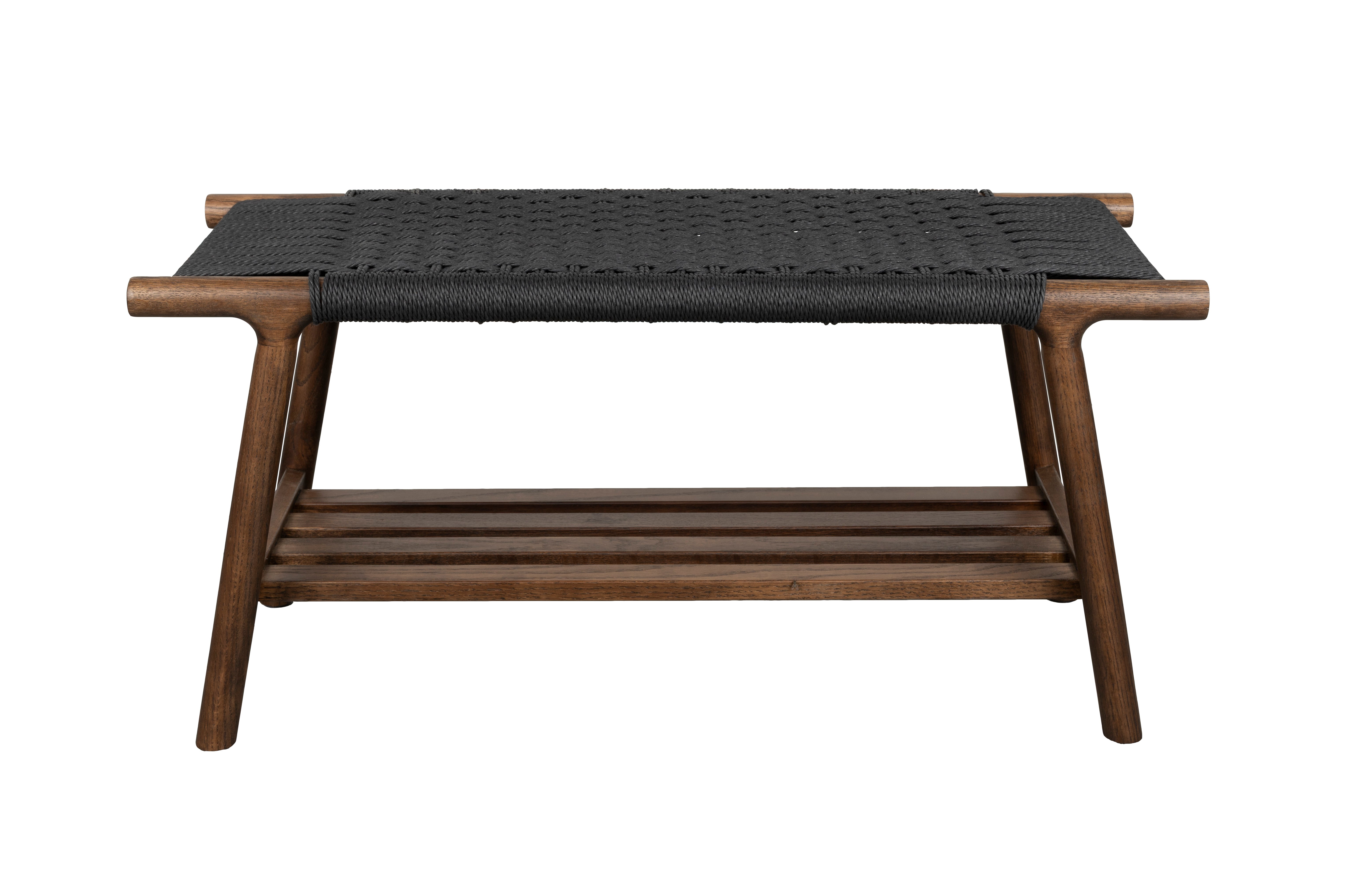 Elegancka ławka Kintaro w kolorze orzecha to elegancki mebel, który wprowadzi do wnętrza ciepły klimat lat siedemdziesiątych. Wykonana z litego drewna dębowego w bogatym, orzechowym odcieniu, zachwyca organicznymi liniami i zaokrąglonymi krawędziami. Największą ozdobą jest charakterystyczne siedzisko z plecionego sznurka, w którym pionowe i poziome pasma przeplatają się ze sobą na środku, tworząc efektowny wzór. Dodatkowa półka z listew umieszczona pod siedziskiem zapewnia praktyczne miejsce do przechowywania obuwia, książek czy drobiazgów.