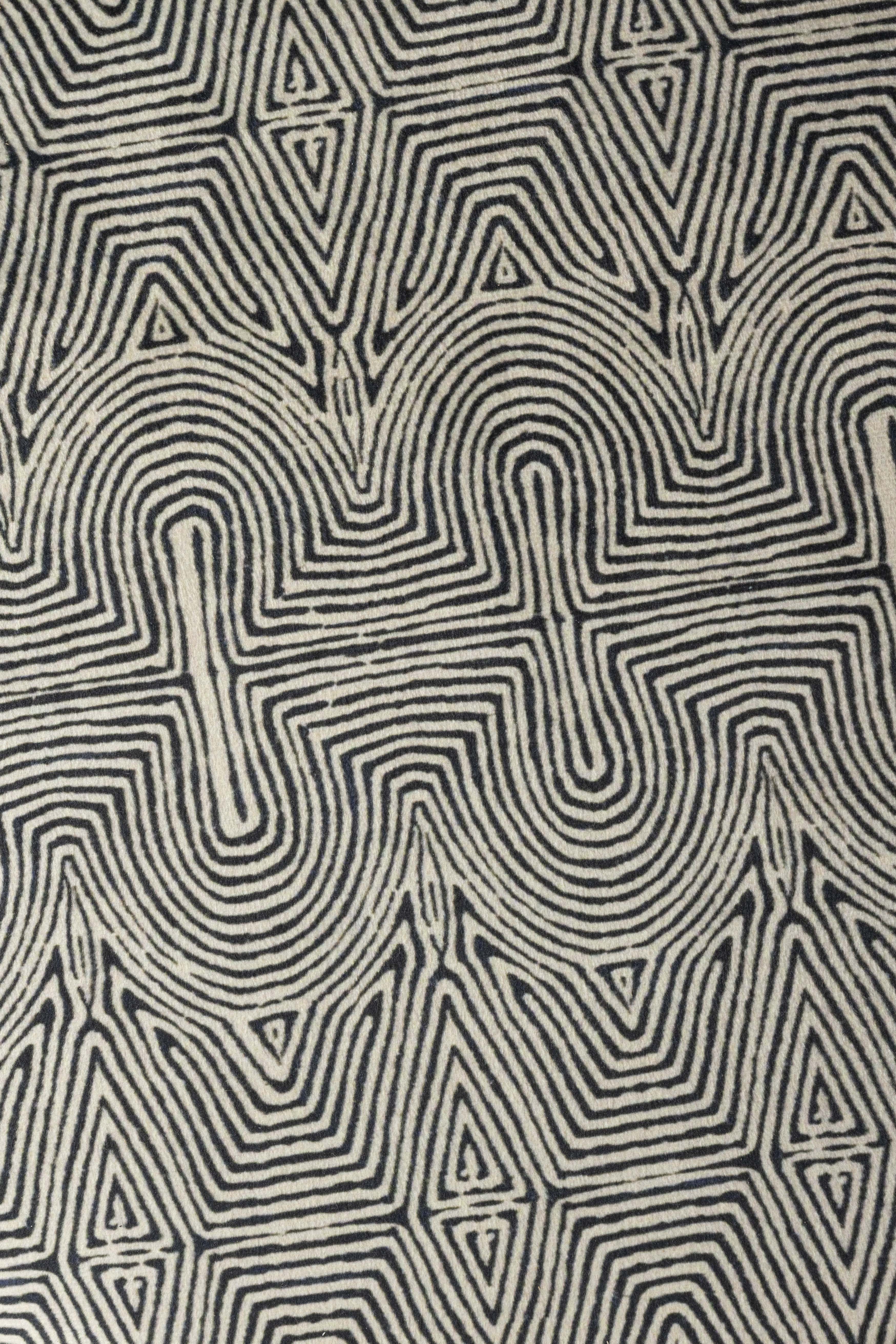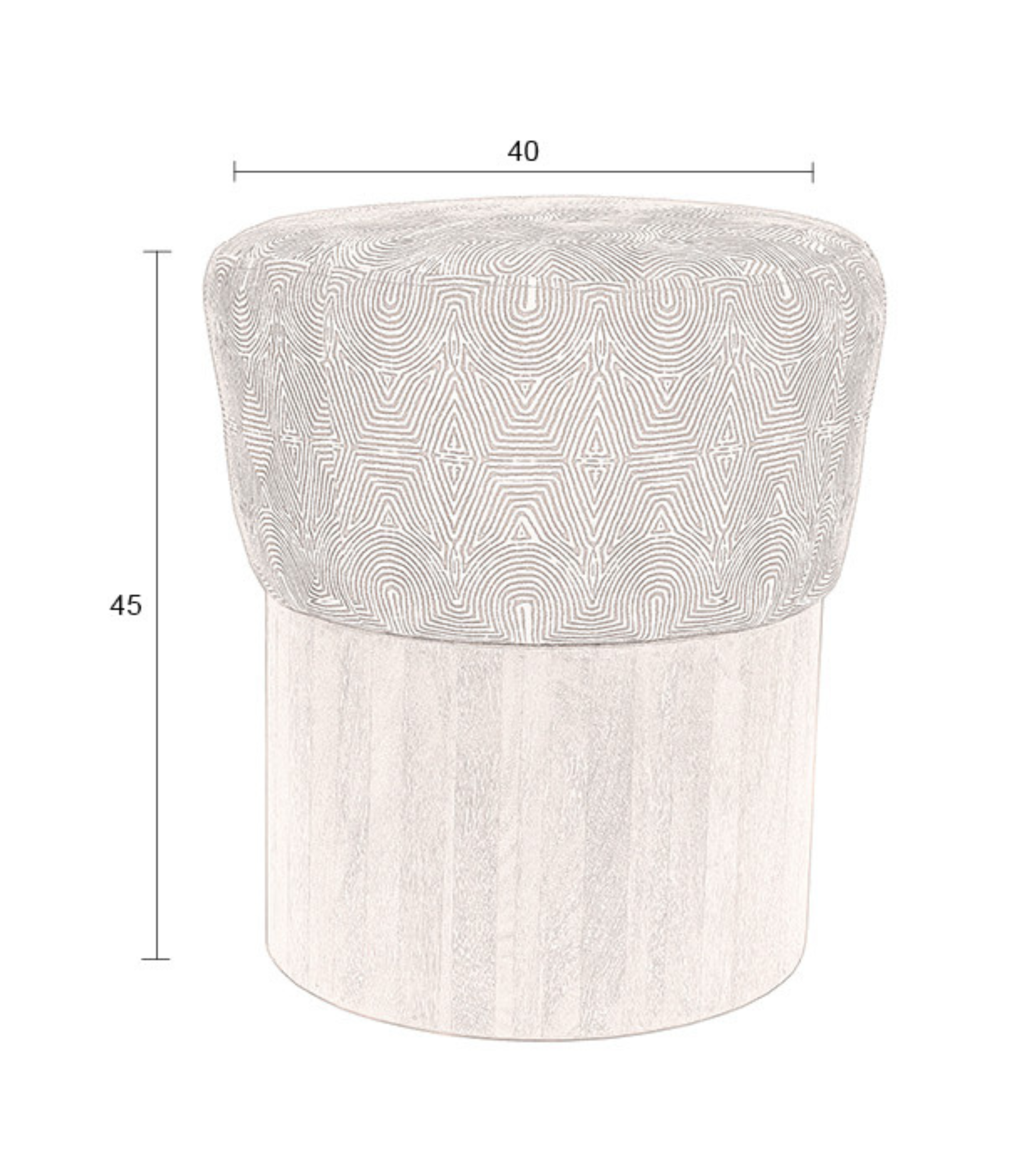 Tapicerowane miękką tkaniną siedzisko w geometryczny motyw przypominający labirynt przyciąga wzrok i nadaje całości wyrazistego charakteru. Fragment to nie tylko stylowy dodatek, ale też funkcjonalny element – sprawdzi się zarówno jako podnóżek, jak i dodatkowe miejsce do siedzenia. Co więcej, każdy egzemplarz jest ręcznie wykonany, co czyni go jeszcze bardziej wyjątkowym.