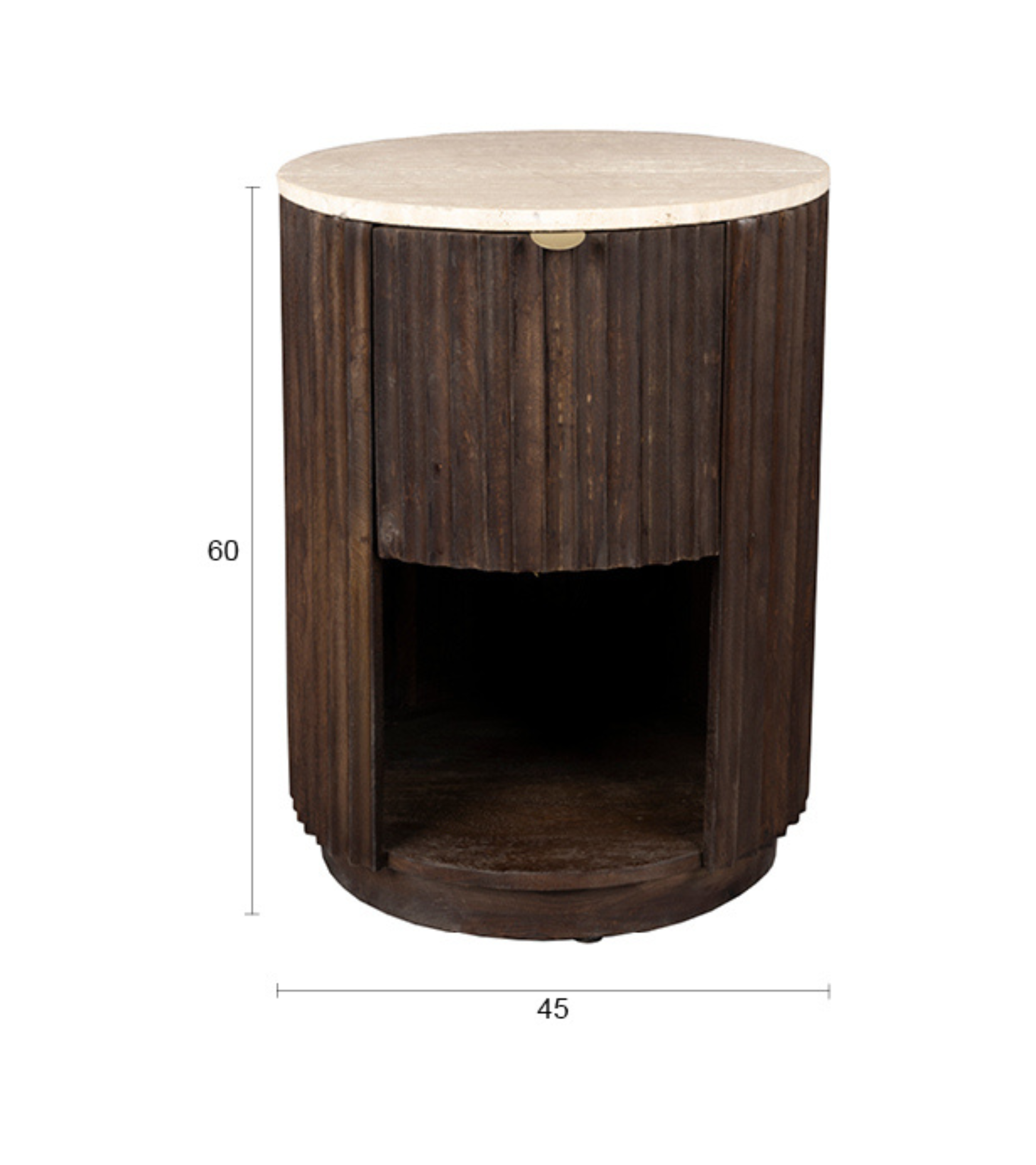 Stolik boczny MARLOW trawertyn z drewnianą podstawą