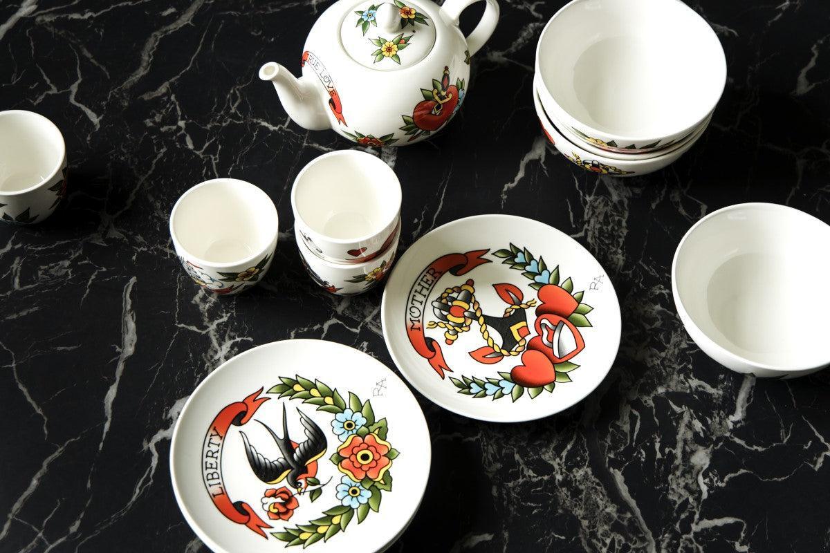 Dzbanek Tatto w kolorze białym to praktyczny dodatek wnętrzarski, który wprost idealnie sprawdzi się przy zaparzaniu ulubionej herbaty. Kolekcja Tatto została stworzona przez Roberta Aalbersa dla marki Polspotten. Artyście udało się uchwycić surową oraz głęboko osobistą naturę tatuaży. Niezwykłe połączenie klasycznego kształtu z innowacyjnym wzornictwem, które nawiązuje do sztuki tworzenia tatuażu sprawia, że model ten sprawdzi się zarówno w tradycyjnych wnętrzach, jak i w pomieszczeniach, które zostały stworzone w nowoczesnych klimatów.