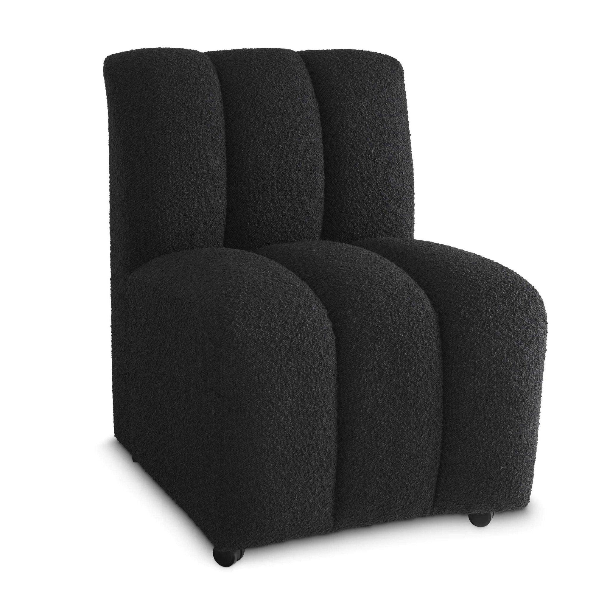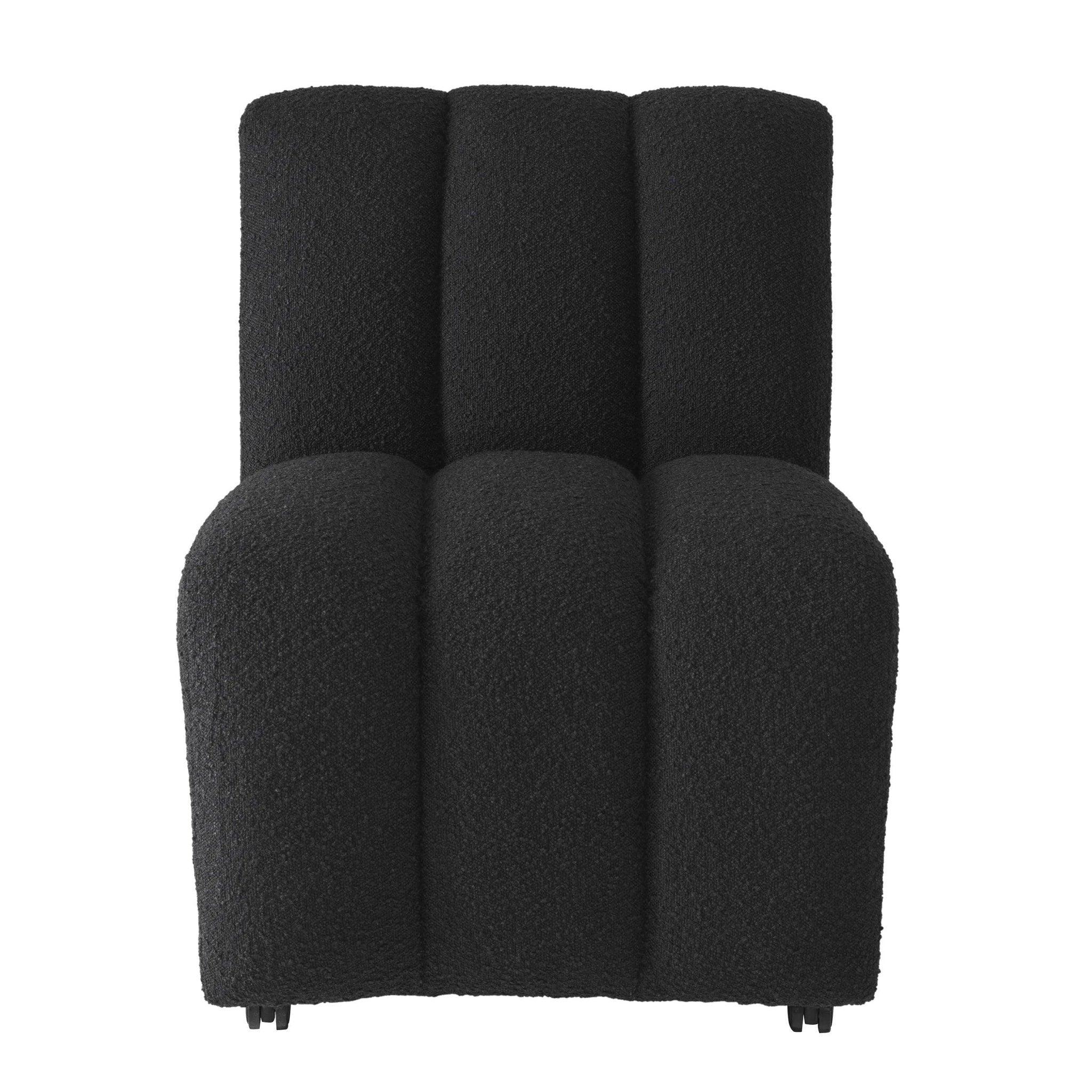 Wyobraź sobie spokojne popołudnie, kiedy promienie słońca wpadają przez okno, tworząc połysk na delikatnej, kremowej tapicerce Bouclé krzesła Kelly. Głębokie szwy nie tylko dodają mu charakteru, ale także opowiadają historię rzemiosła i precyzji, z jaką zostało wykonane. Te staranne detale tworzą scenę idealną dla każdej kolacji, czy to romantycznej kolacji we dwoje, czy rodzinnych świąt.