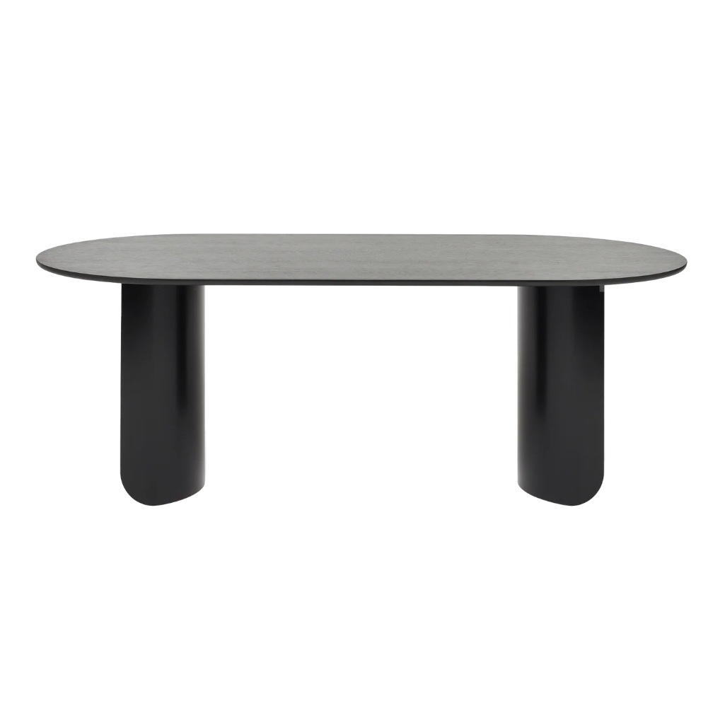Stół owalny PLATEAU dębowy blat z czarną podstawą