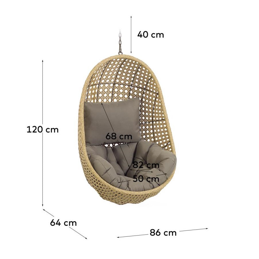 Rozsiądź się wygodnie w dołączonych poduszkach i poczuj, jak codzienne chwile relaksu stają się wyjątkowo komfortowe. Designerski fotel wiszący Cira to nie tylko mebel, ale także sposób na odprężenie i odpoczynek w otoczeniu naturalnych elementów. Dzięki jego solidnej konstrukcji i wysokiej jakości materiałom możesz cieszyć się nim przez wiele sezonów, niezależnie od warunków atmosferycznych.