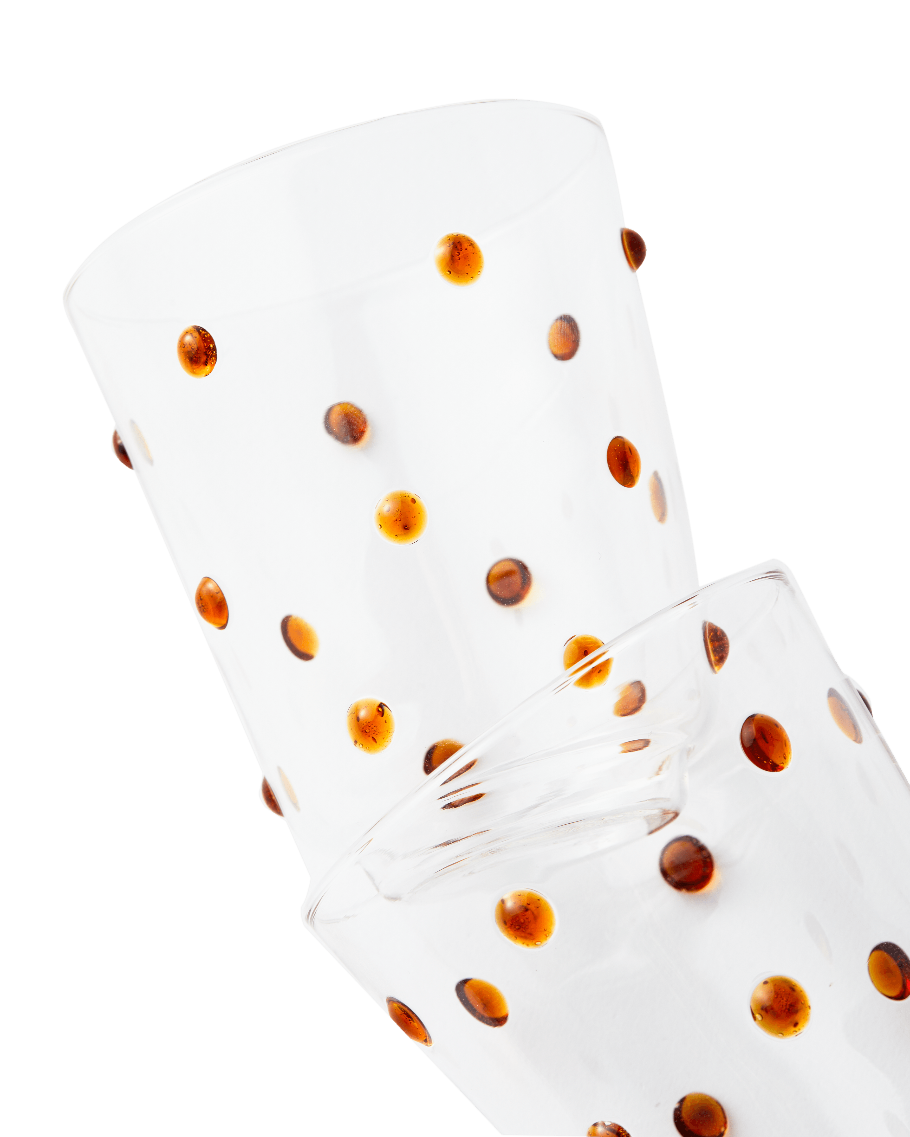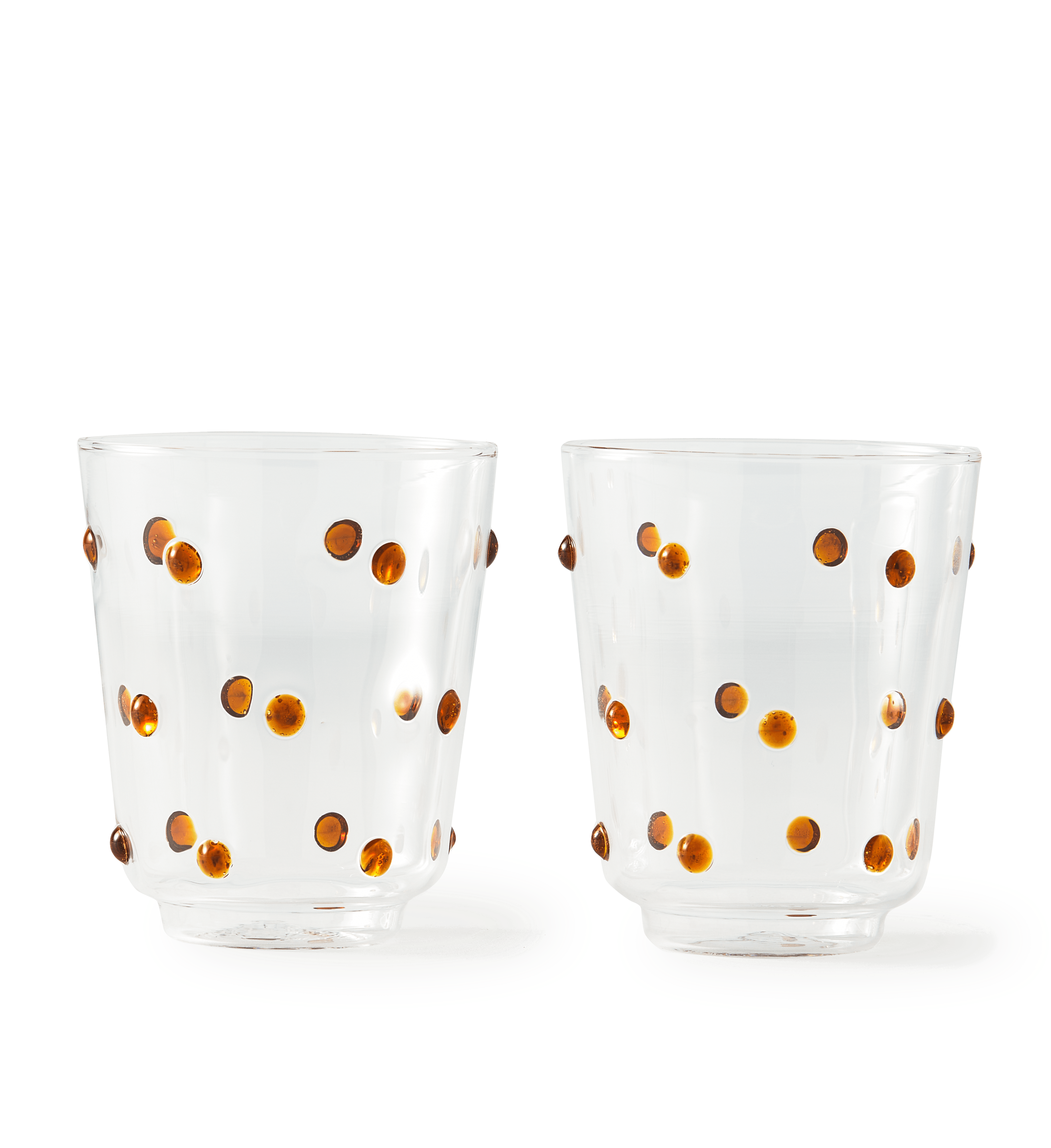 Zestaw szklanek Nob z brązowymi kropkami w formie wypustek to wyjątkowy element wyposażenia. Wykonane z trwałego szkła, które jest odporne na zmienne temperatury, te szklanki łączą w sobie funkcjonalność i oryginalny design. Brązowe kropki w formie wypustek nadają im niezwykły charakter i sprawiają, że stanowią interesującą dekorację do wielu różnych aranżacji wnętrz. Są nie tylko praktyczne, ale także stanowią atrakcyjny akcent wizualny, który wzbogaca każde spotkanie i podkreśla elegancję przestrzeni.