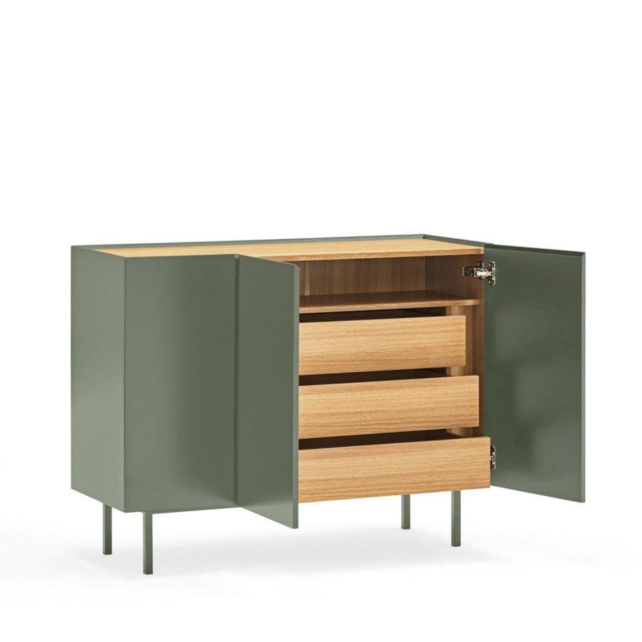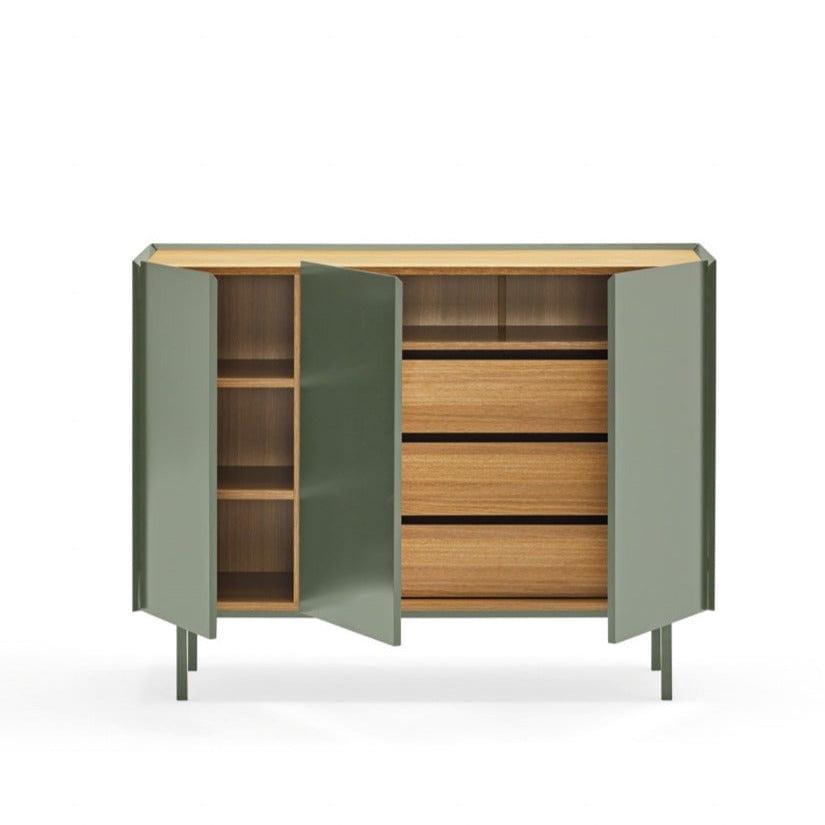 Nawiązania do natury oraz prosty układ sprawiają, że trudno jest oderwać wzrok od zielonej szafki Arista. Inteligentne zastosowanie półek w różnych rozmiarach pozwala na efektywne zagospodarowanie przestrzeni. Precyzyjne wykończenie to jedna z największych zalet kolekcji Arista.