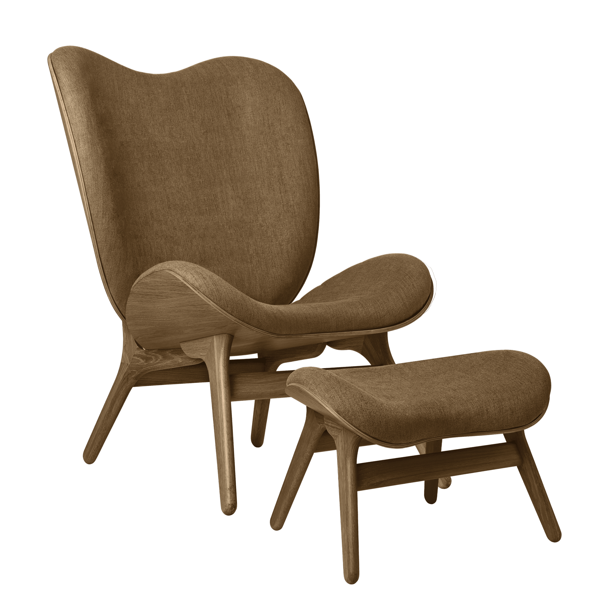 Fotel Conversation Piece Tall jest dostępny w kolorach dębu, ciemnego dębu oraz czarnego dębu, w ośmiu starannie dobranych odcieniach tkaniny Horizons, wykonanej w całości z materiałów pochodzących z recyklingu, a także w dwóch kolorach tkaniny Teddy Bear.