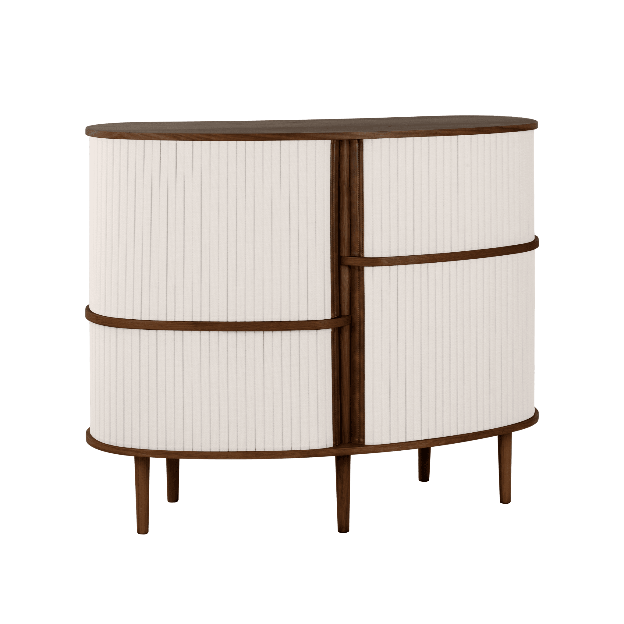 Kredens Audacious to niezwykle praktyczna szafka, doskonała do umieszczenia w salonie lub w dowolnym innym pomieszczeniu, gdzie potrzebujesz miejsca do przechowywania. Charakteryzuje się ona nordyckim, ale odważnym stylem, a przesuwane żaluzje z tkaniny nadają mu nostalgiczny, a zarazem nowoczesny charakter.
