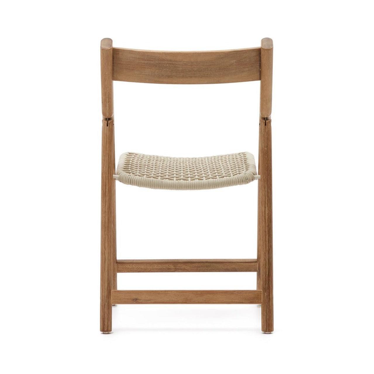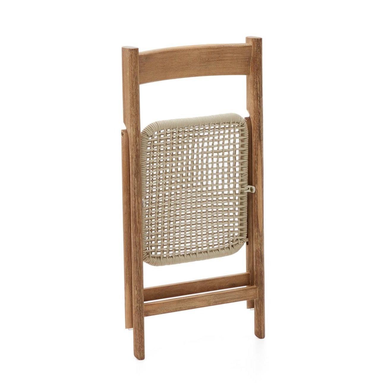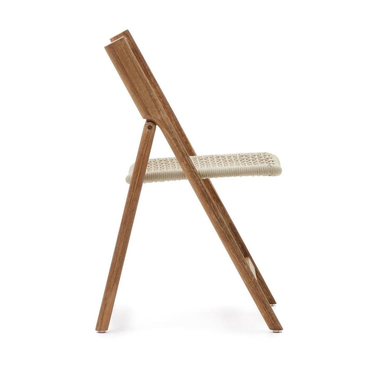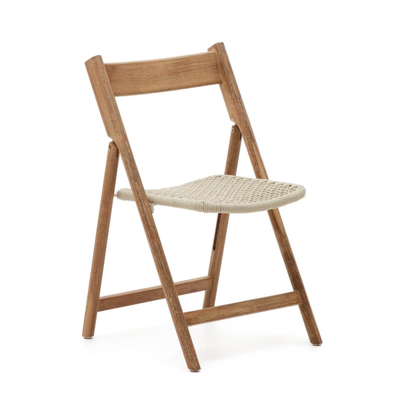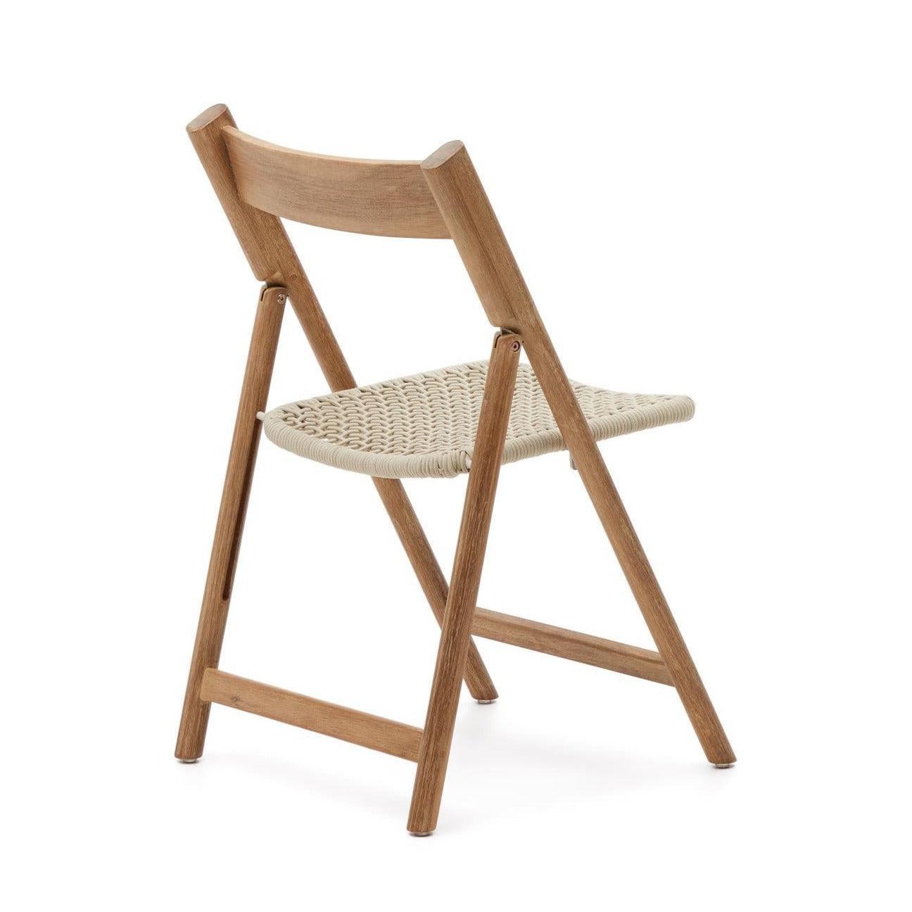 Krzesło składane DANDARA lite drewno akacjowe z kremowym siedziskiem