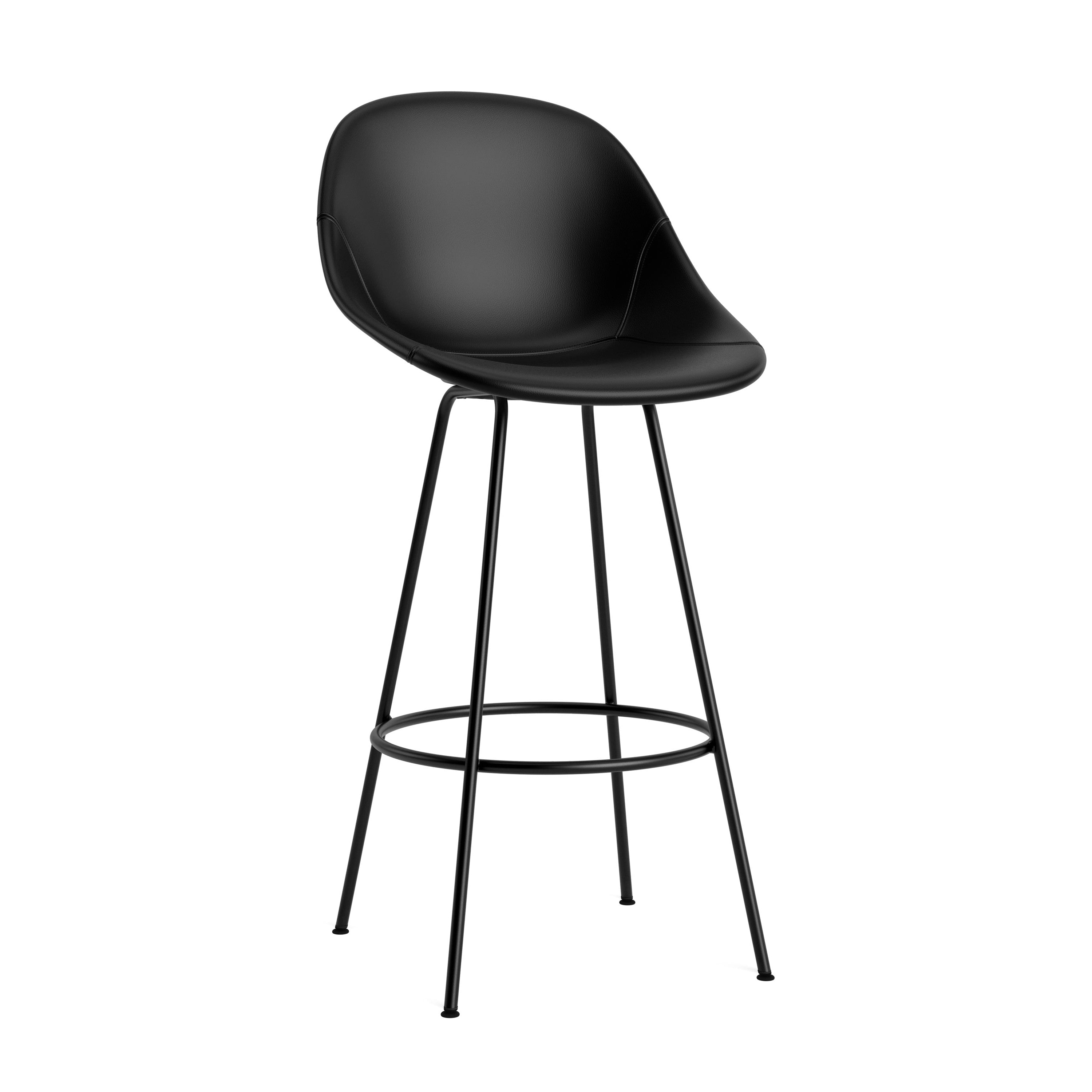 Krzesło barowe tapicerowane z oparciem MAT z czarną podstawą