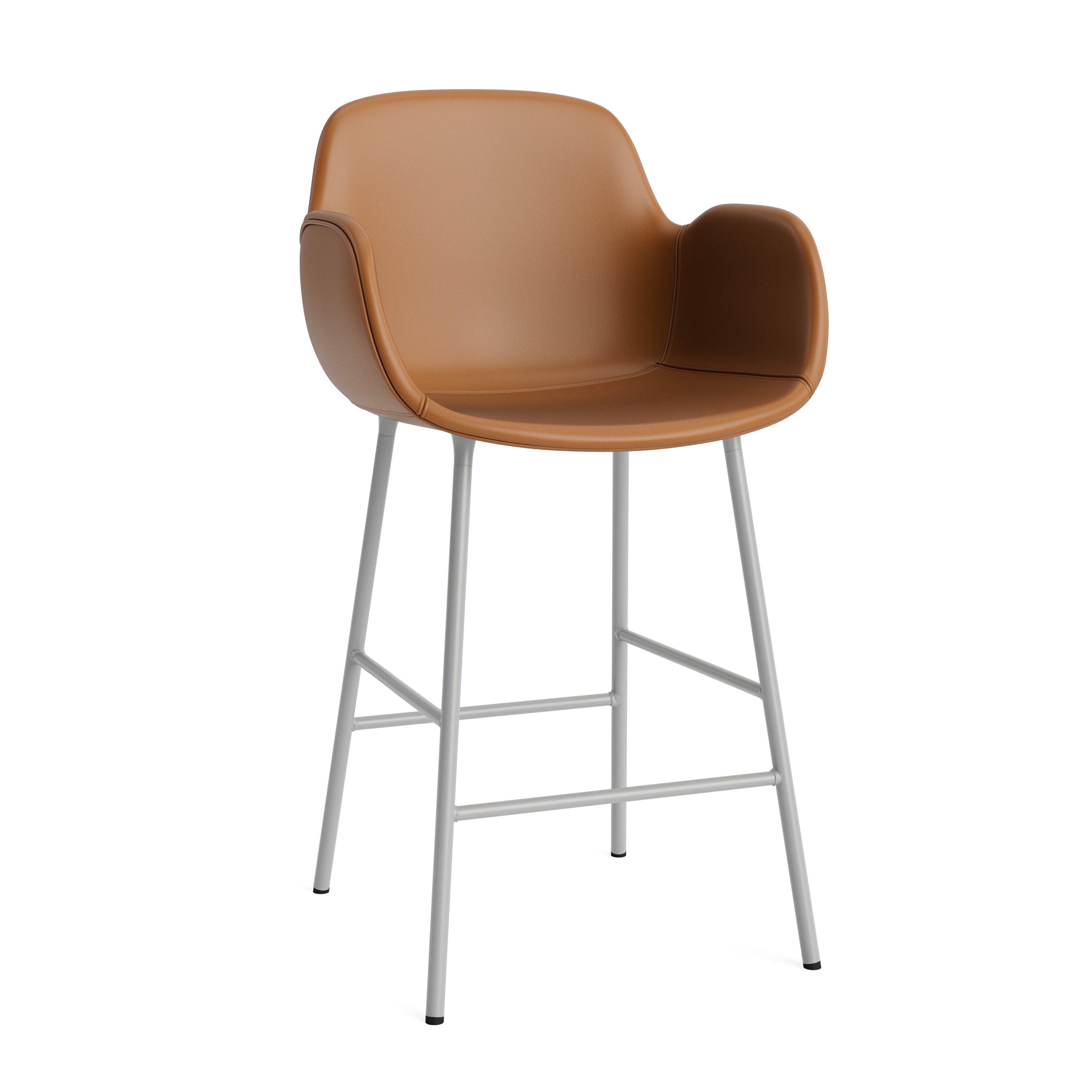 Krzesło barowe tapicerowane z podłokietnikami FORM z ciepło szarą podstawą