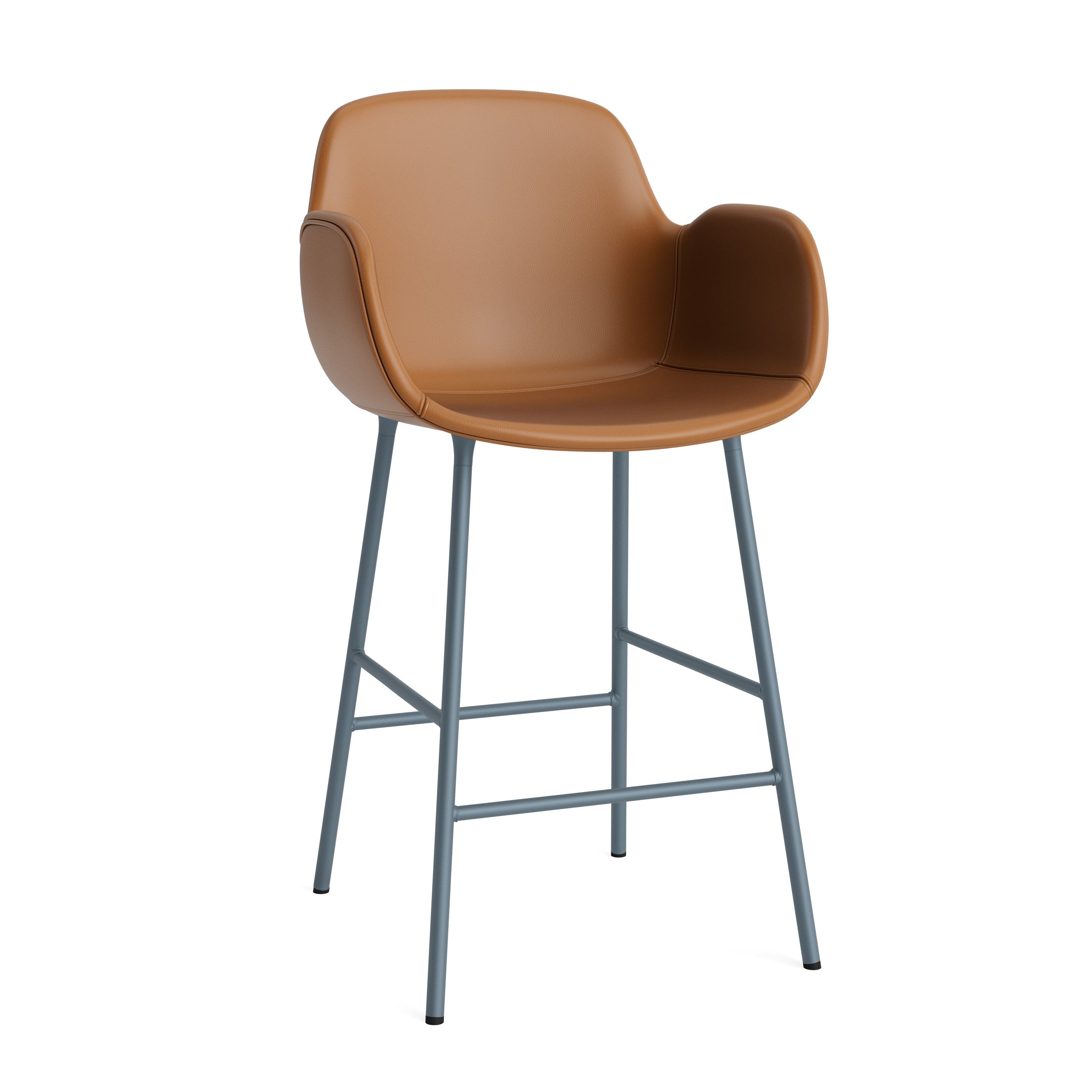 Krzesło barowe tapicerowane z podłokietnikami FORM z niebieską podstawą