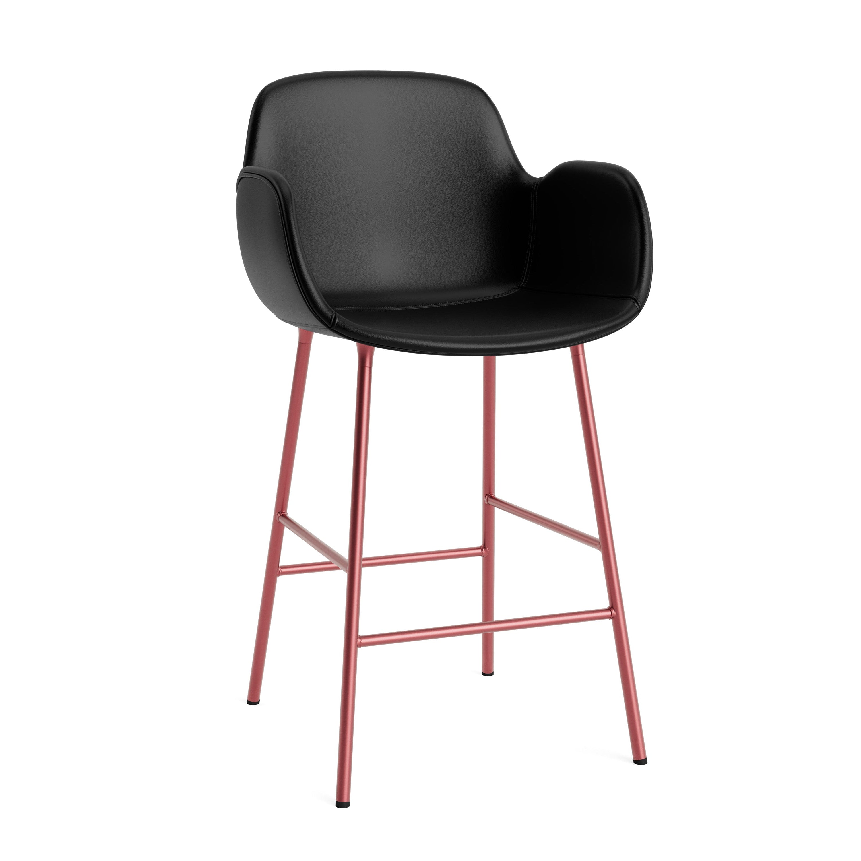 Krzesło barowe tapicerowane z podłokietnikami FORM z czerwoną podstawą