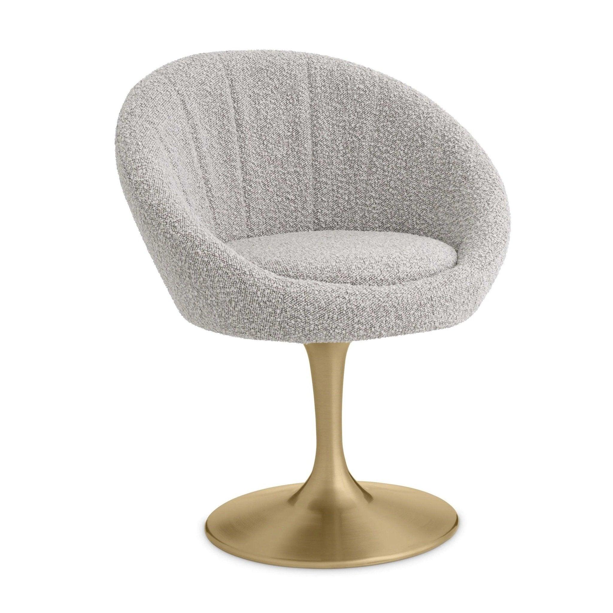 Krzesło w tkaninie boucle O'NEILL szary z mosiężną podstawą