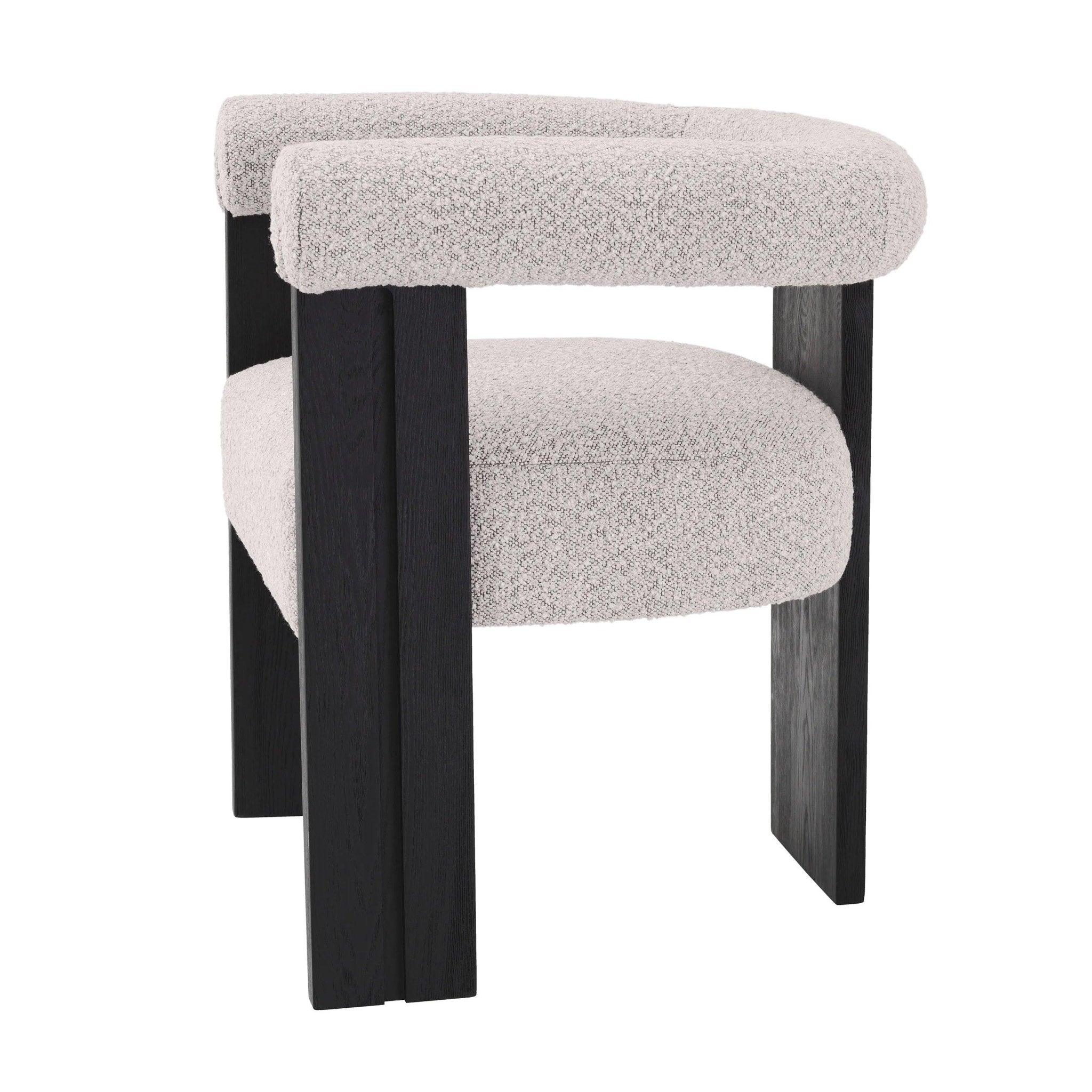 Krzesło do jadalni Percy to esencja elegancji w nowoczesnej formie. Wyobraź sobie, jak ten śmiałe, ale jednocześnie subtelny element wnętrza przyciąga wzrok i staje się centralnym punktem Twojej jadalni. Czarna rama dodaje krzesłu klasy i wyrazistości, podczas gdy okrągłe oparcie - z płynnym przejściem w podłokietniki - przypomina delikatne obejmowanie osoby siedzącej, gwarantując komfort na każdym etapie posiłku.