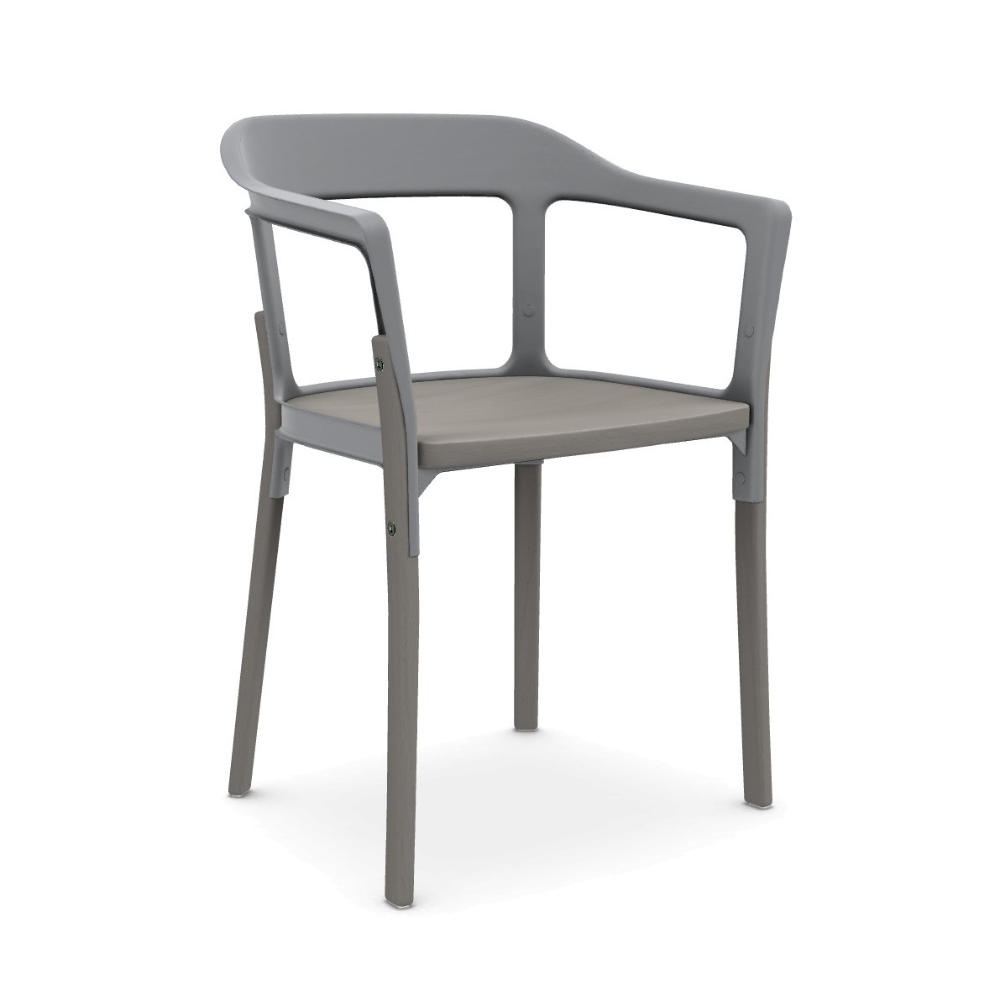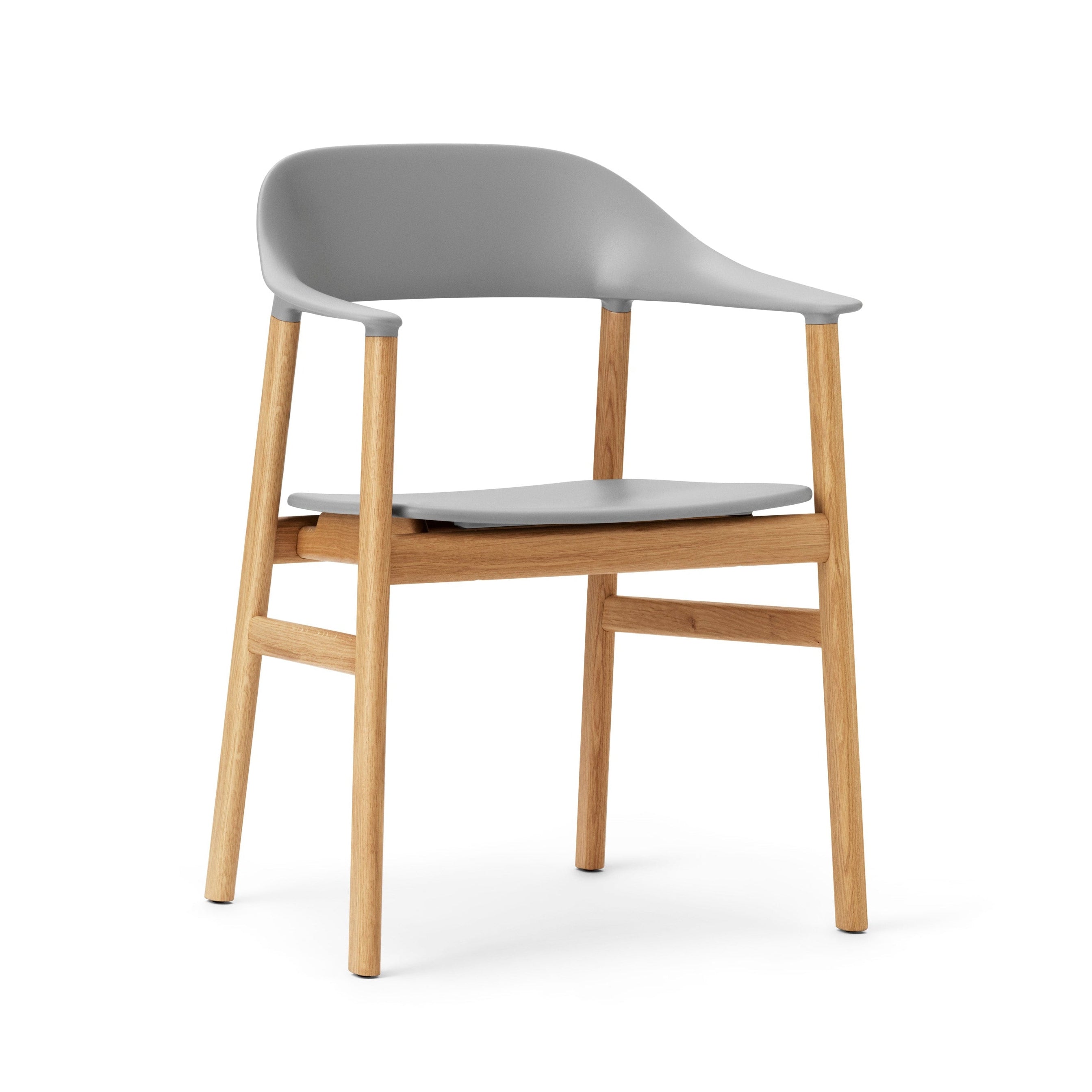 Krzesło z podłokietnikami FORM szary z dębową podstawą