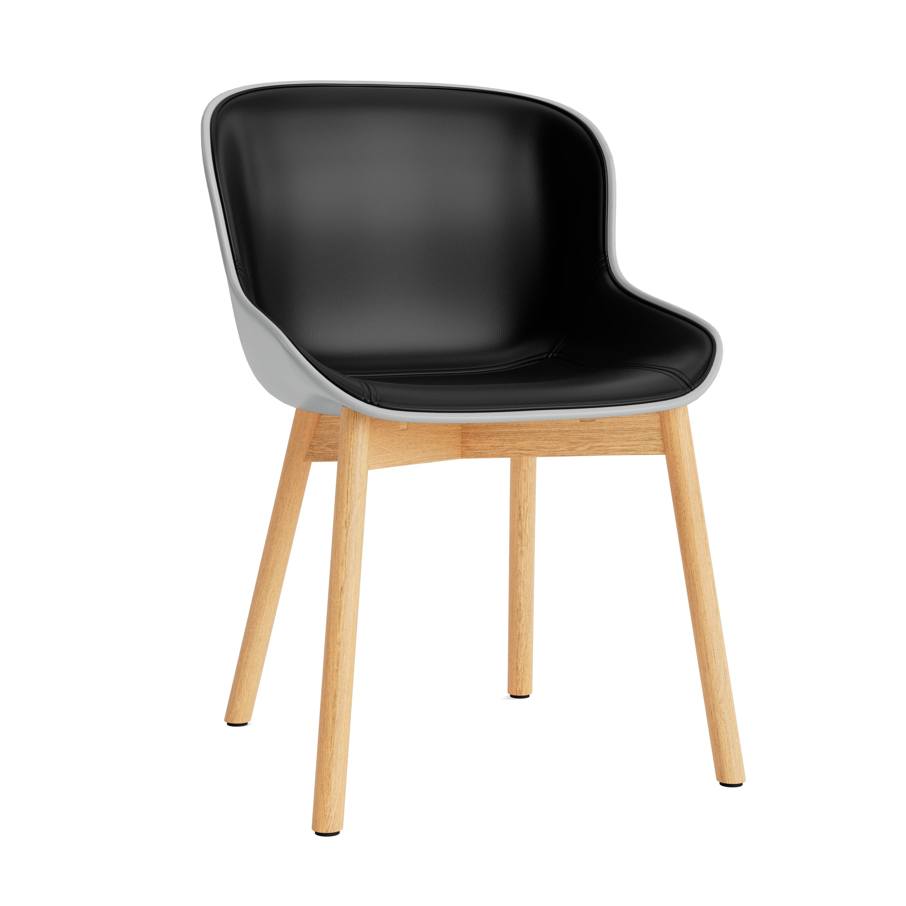 Krzesło STUDIO tapicerowany przód z jasnym szarym fornirem jesionowym i czarną podstawą