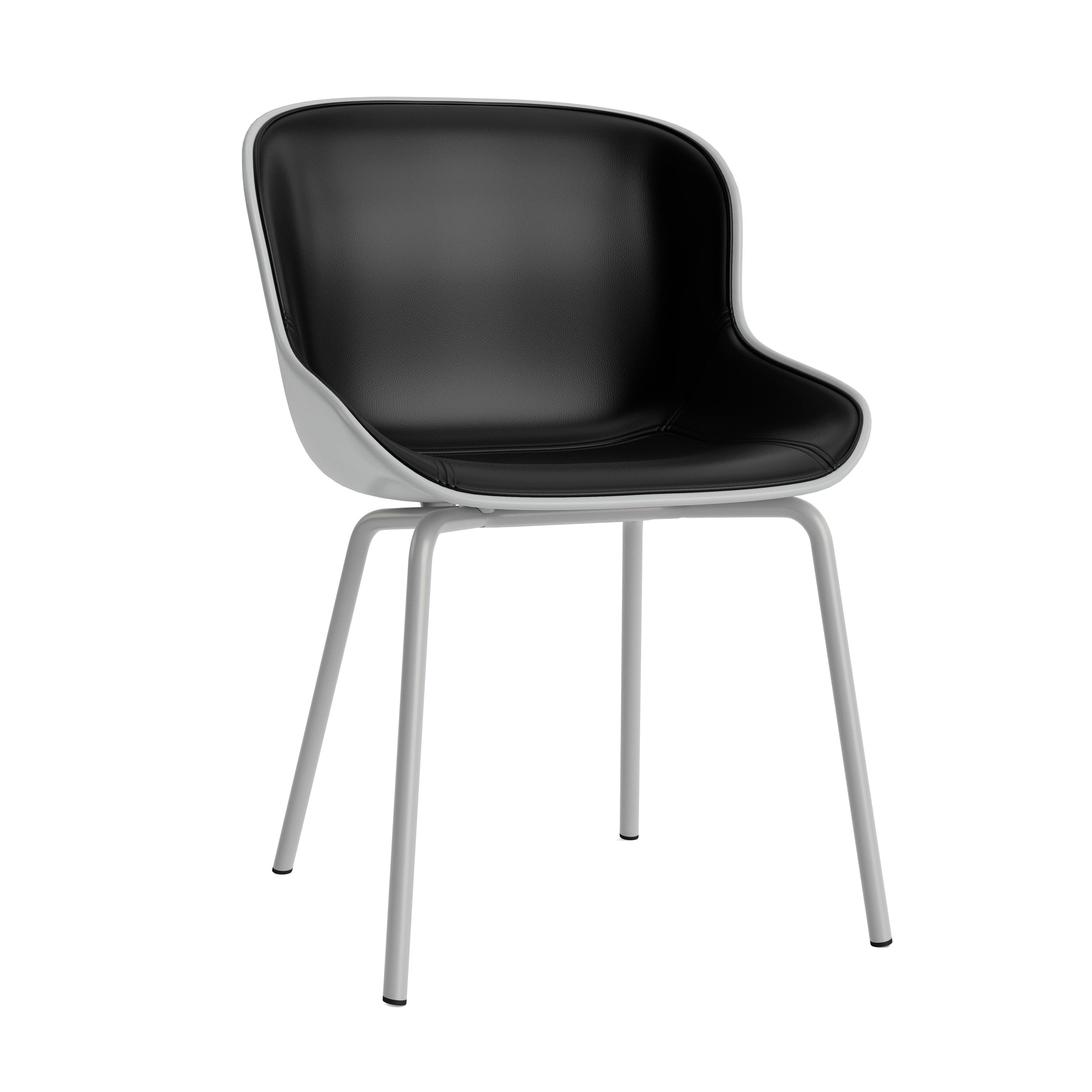 Krzesło z podłokietnikami FOYER skóra ciemnoszary z metalową podstawą