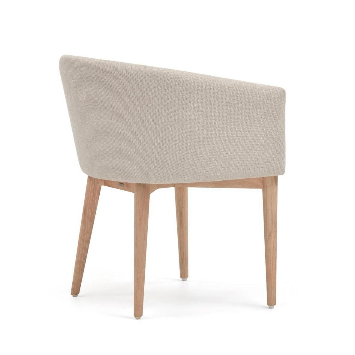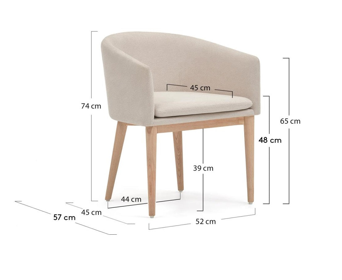 Tapicerowane szenilą, beżowe krzesło Harlan gwarantuje łatwość w utrzymaniu czystości, co jest istotnym atutem w codziennym użytkowaniu. Wyściełane oparcie z podłokietnikami zapewniają wygodę nawet podczas długotrwałego siedzenia, umożliwiając relaks i komfort.