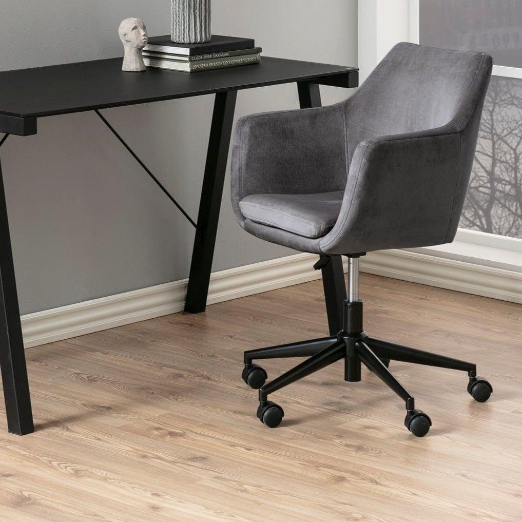 Krzesło biurowe Milas w kolorze ciemnoszarym z czarną podstawą to klasyk, którego nie może zabraknąć w Twoim domowym biurze. Elegancki kształt, niebanalna forma oraz niezwykle komfortowe wykończenie sprawia, że trudno jest sobie wyobrazić lepsze krzesło biurowe niż model Milas.