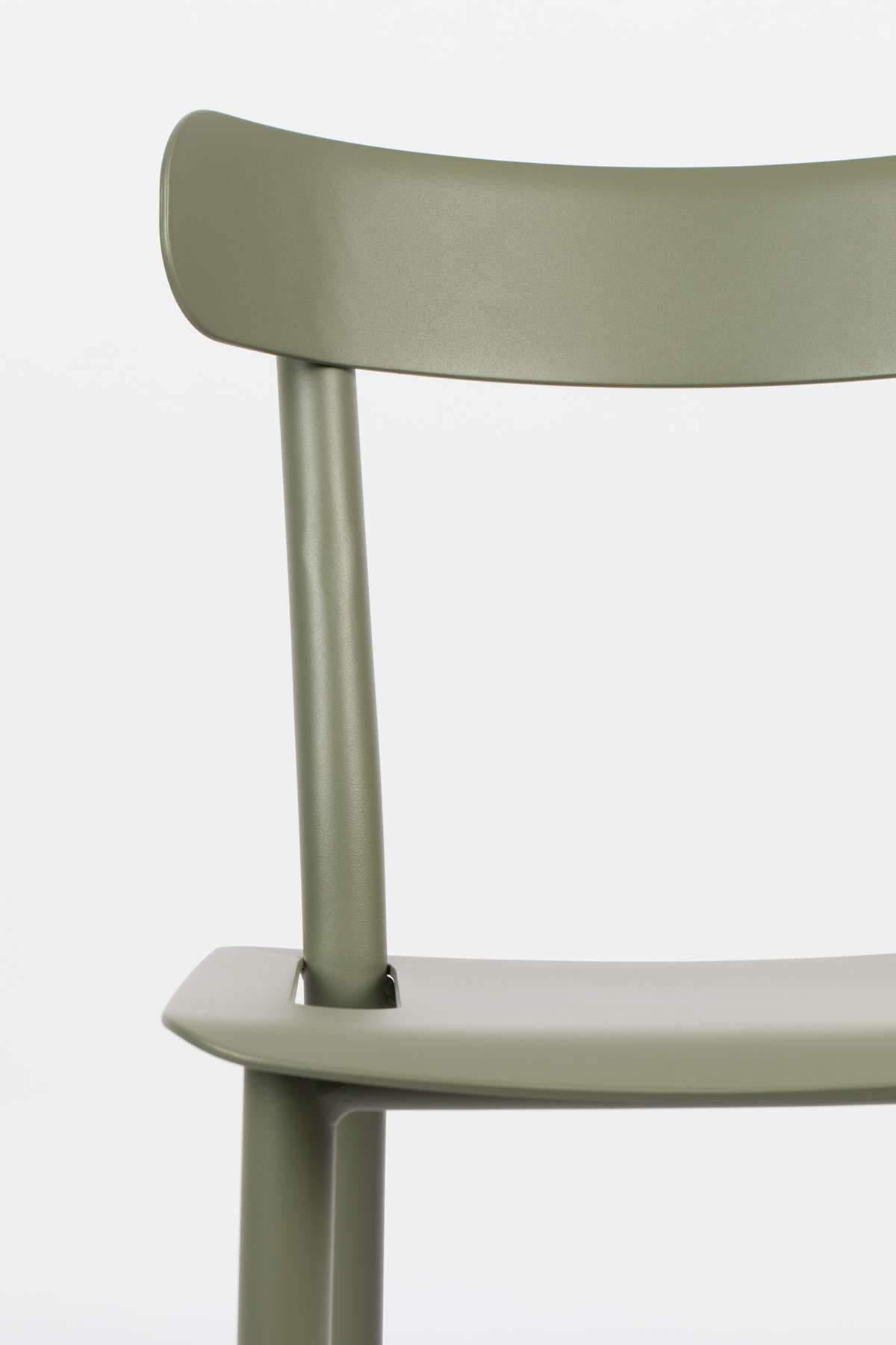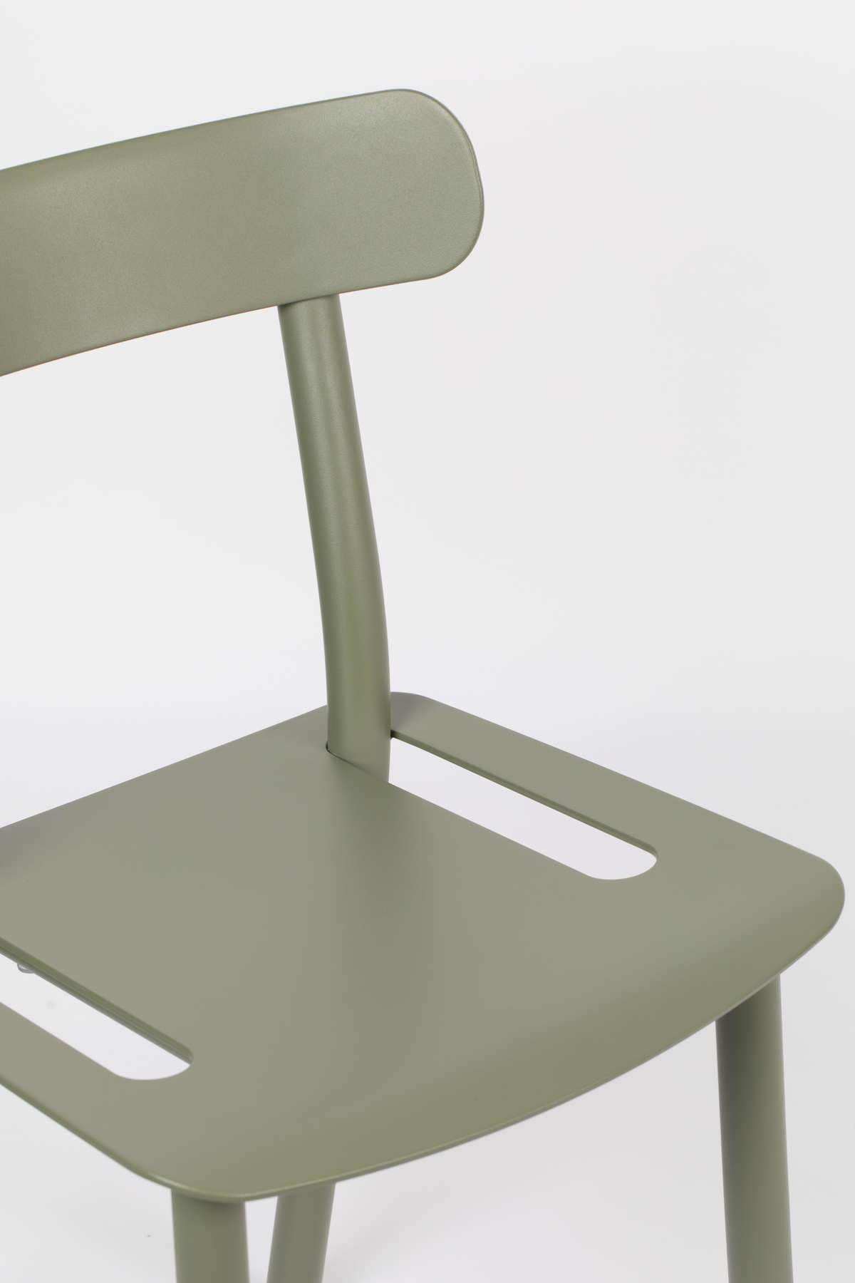 Tylne nogi, przechodząc płynnie przez siedzenie, nadają krzesłu niepowtarzalny wygląd oraz ułatwiają przechowywanie, dzięki możliwość ich piętrowania. Aluminium, z którego wykonano krzesło, nadaje się do stosowania wewnątrz jak i na zewnątrz budynku. Użyte zaślepki, wykonane z tworzywa sztucznego, chowają wszystkie elementy konstrukcyjne.