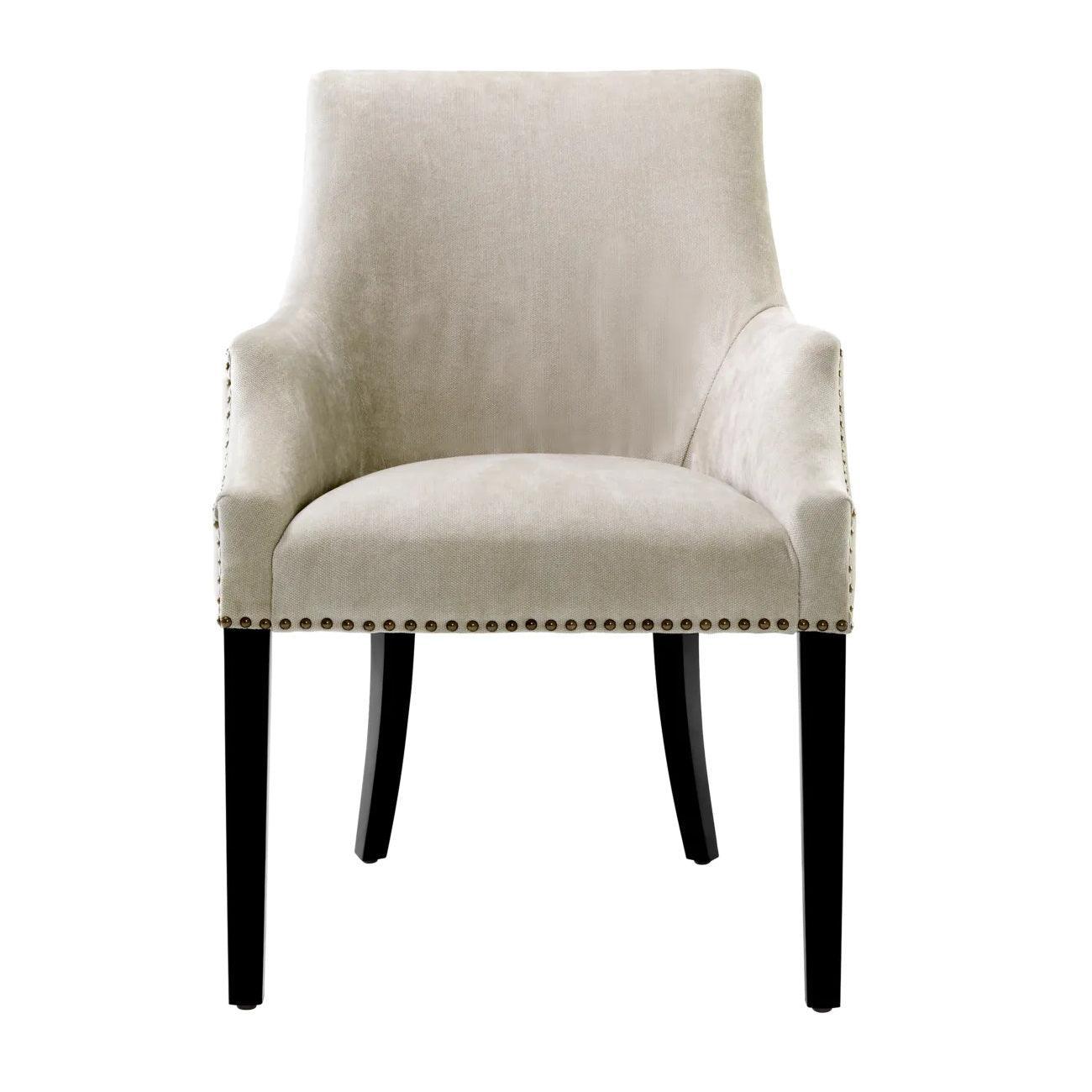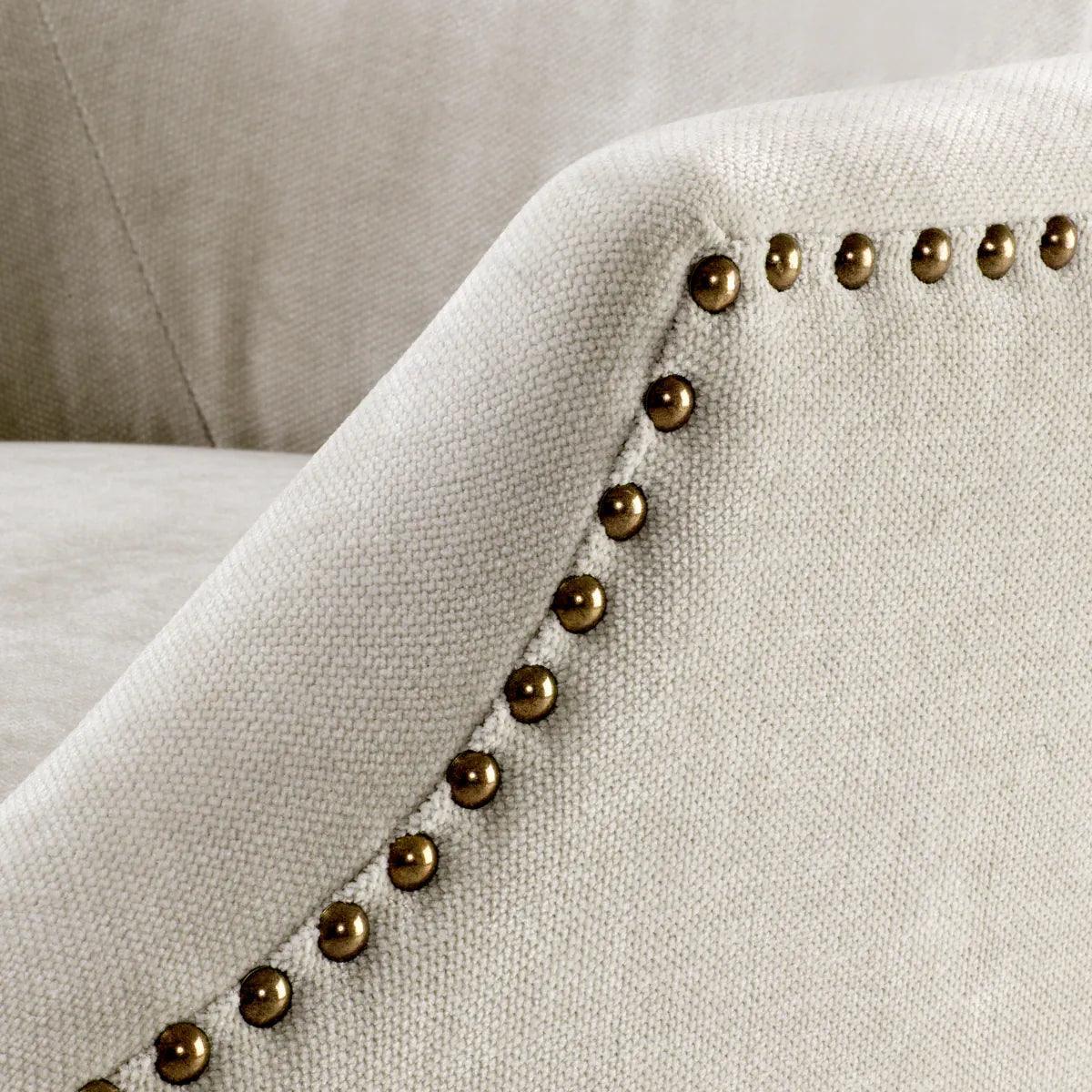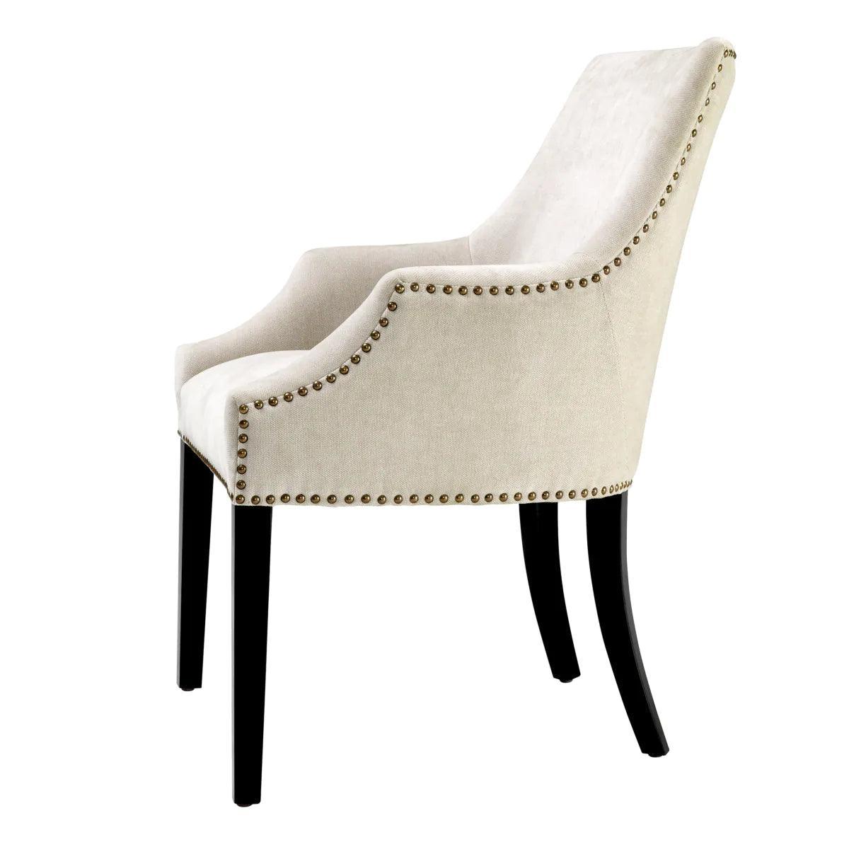 Kiedy przysiądziesz, poczujesz, jak miękka szara tapicerka Clarck otula Twoje ciało, dodając odrobinę luksusu do codziennego używania. Każdy element tego piaskowego krzesła został starannie przemyślany: od tapicerki, utrwalonej historycznymi mosiężnymi gwoździami, które przypominają o rzemieślniczej tradycji, po smukłe czarne nogi, które dodają elegancji.