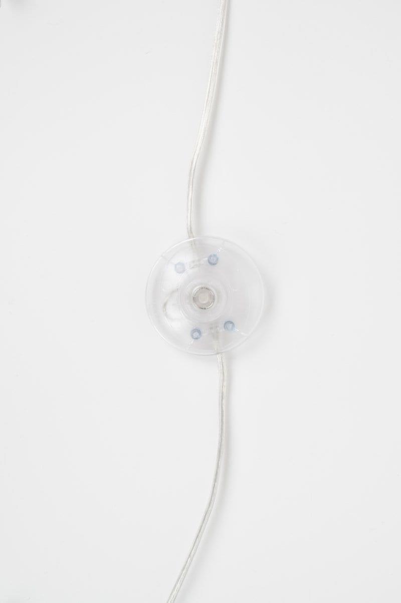 Stelaż lampy wykonano z metalu. Abażur został zrobiony z poliestru, który można łatwo zdjąć dzięki zapięciom na rzepy.