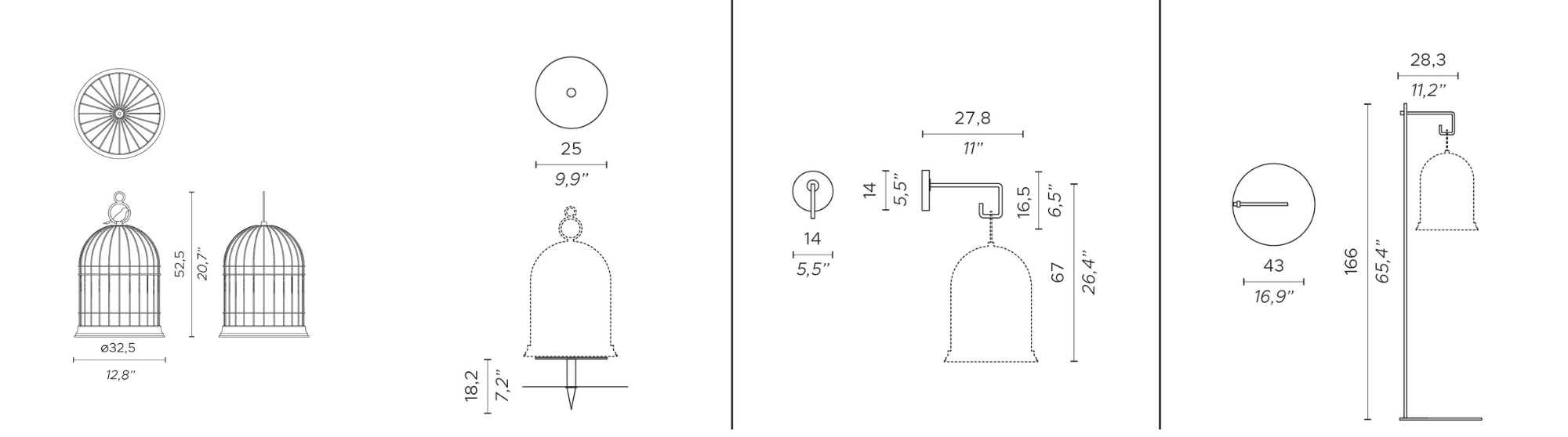 Lampa Freedom ma kształt metalowej klatki i symbolizuje wolność, dzięki umieszczonemu na zewnątrz ptaka, zamiast wewnątrz. Jest to lampa zewnętrzna o klasie ochrony IP65, dostępna w wersji przewodowej lub zasilanej baterią. Wielofunkcyjna lampa Freedom od Contardi może być używane jako lampa stołowa, lampa podłogowa lub lampa ścienno-sufitowa - lub jako wszystkie trzy, w zależności od wybranych akcesoriów.