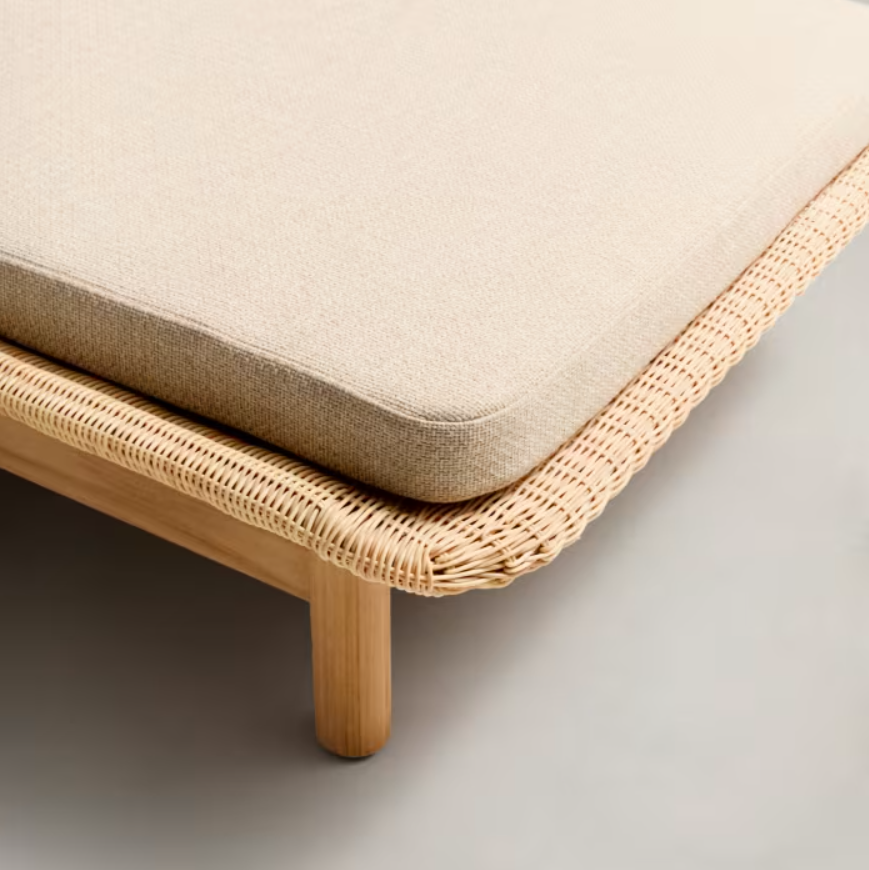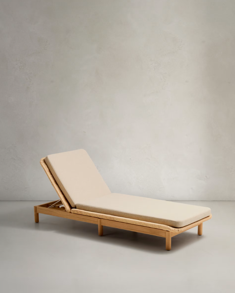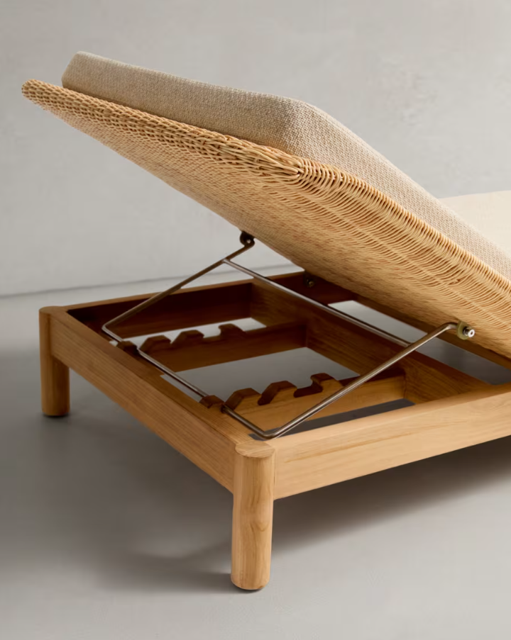Leżak ogrodowy Galea to kwintesencja stylu i funkcjonalności, łącząca elegancję ręcznie plecionego rattanu z trwałością litego drewna tekowego. Każdy egzemplarz jest wykonany z drewna o certyfikacie FSC™ 100%, co gwarantuje odpowiedzialną gospodarkę leśną. Rattanowe siedzisko i oparcie, odporne na warunki atmosferyczne, zapewniają nie tylko wygodę, ale także łatwość w utrzymaniu czystości.