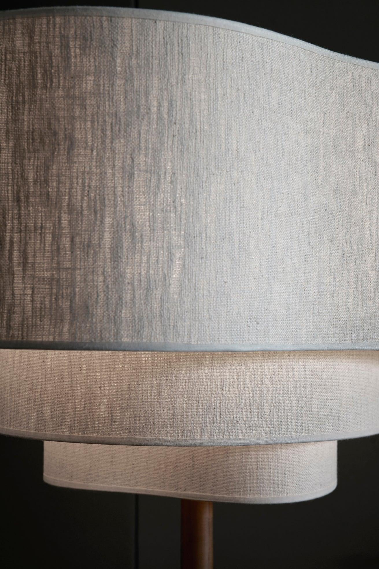 Niezwykłość tej lampy podkreśla abażur o organicznym kształcie, składający się z trzech warstw tkaniny. Ta nietypowa forma abażura nie tylko dodaje lampie wyjątkowego charakteru, ale również tworzy interesującą grę światła i cienia w pomieszczeniu.
