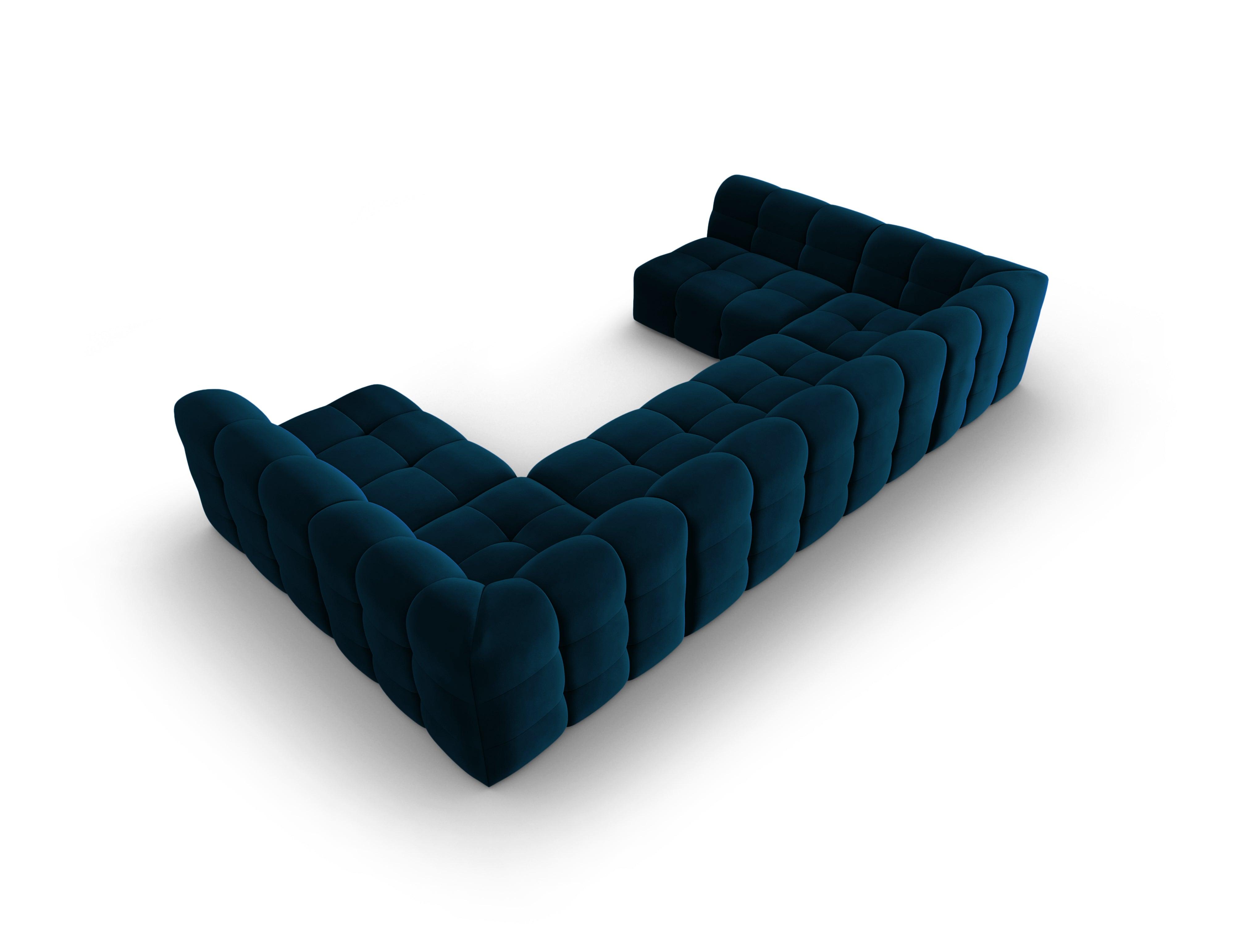 Aksamitny narożnik w kształcie U Kendal zachwyca niezwykłymi przeszyciami i pikowaniem, które dodadzą wnętrzu niezwykłej elegancji w stylu modern classic. Bąbelkowe siedzisko w połączeniu ze stylowym oparciem tworzy komfortowe miejsce do relaksu po ciężkim dniu. Kendal zaskakuje nieco awangardową formą i przyciąga uwagę, niezależnie z której strony na nią spojrzymy.